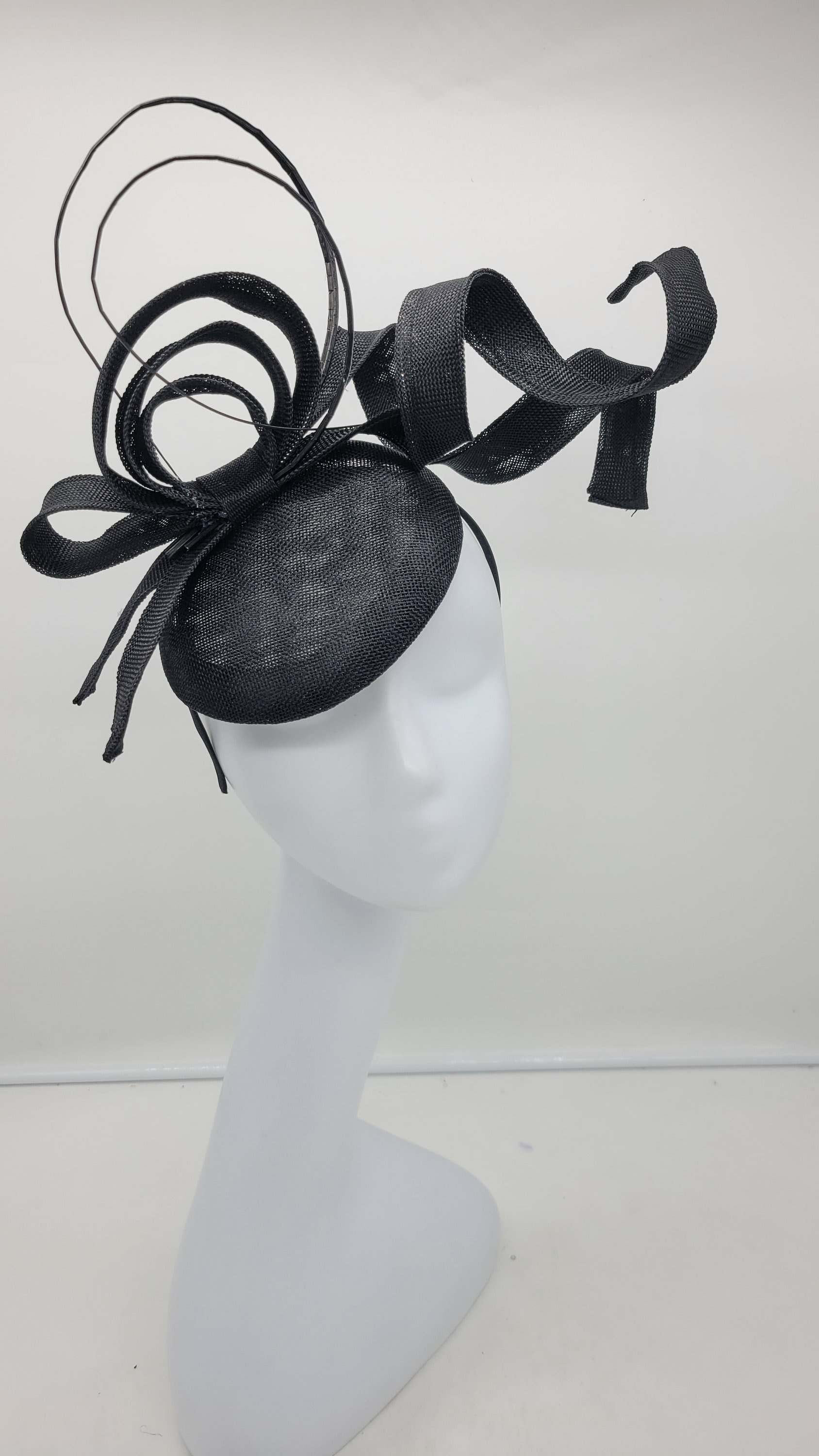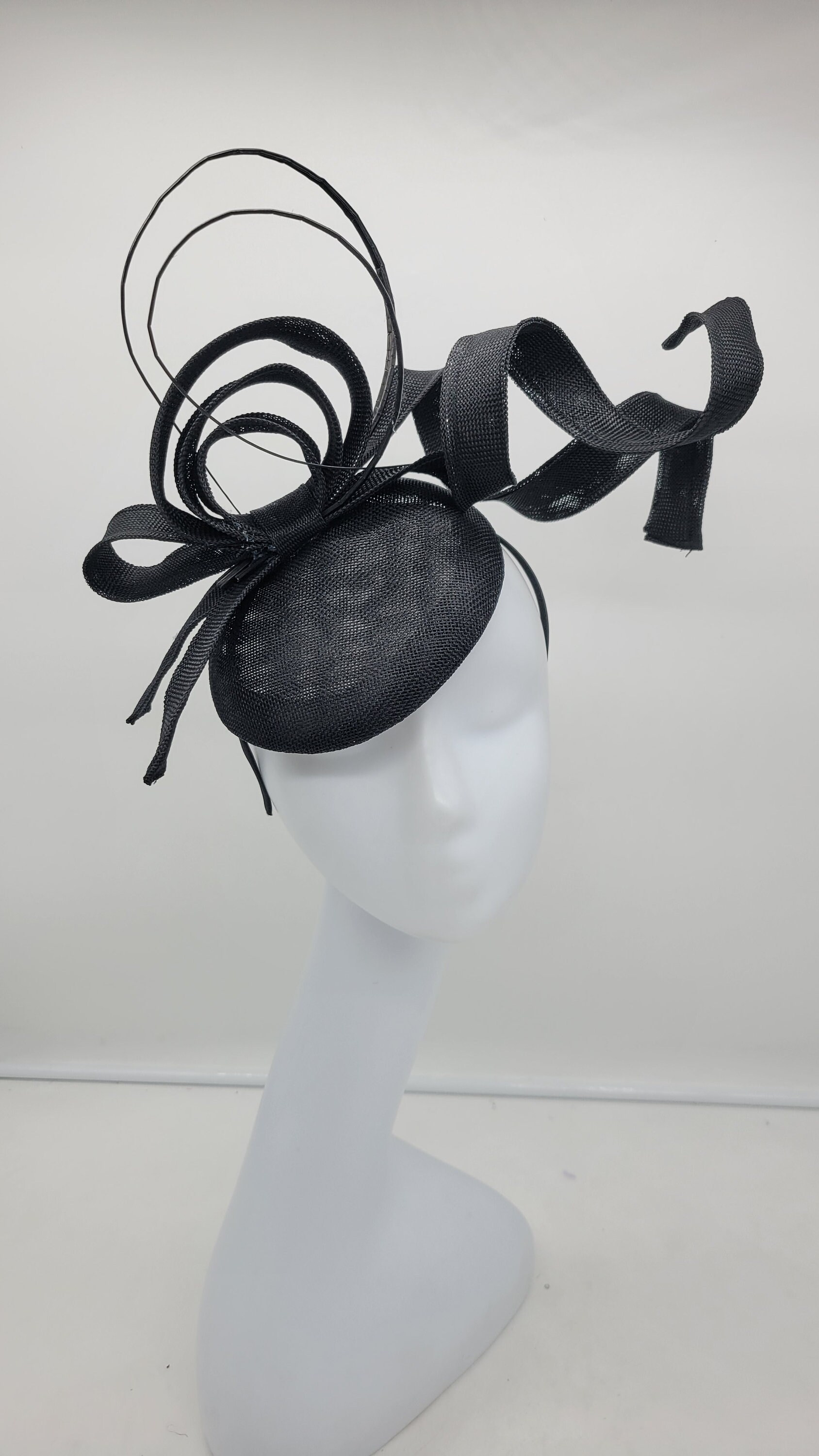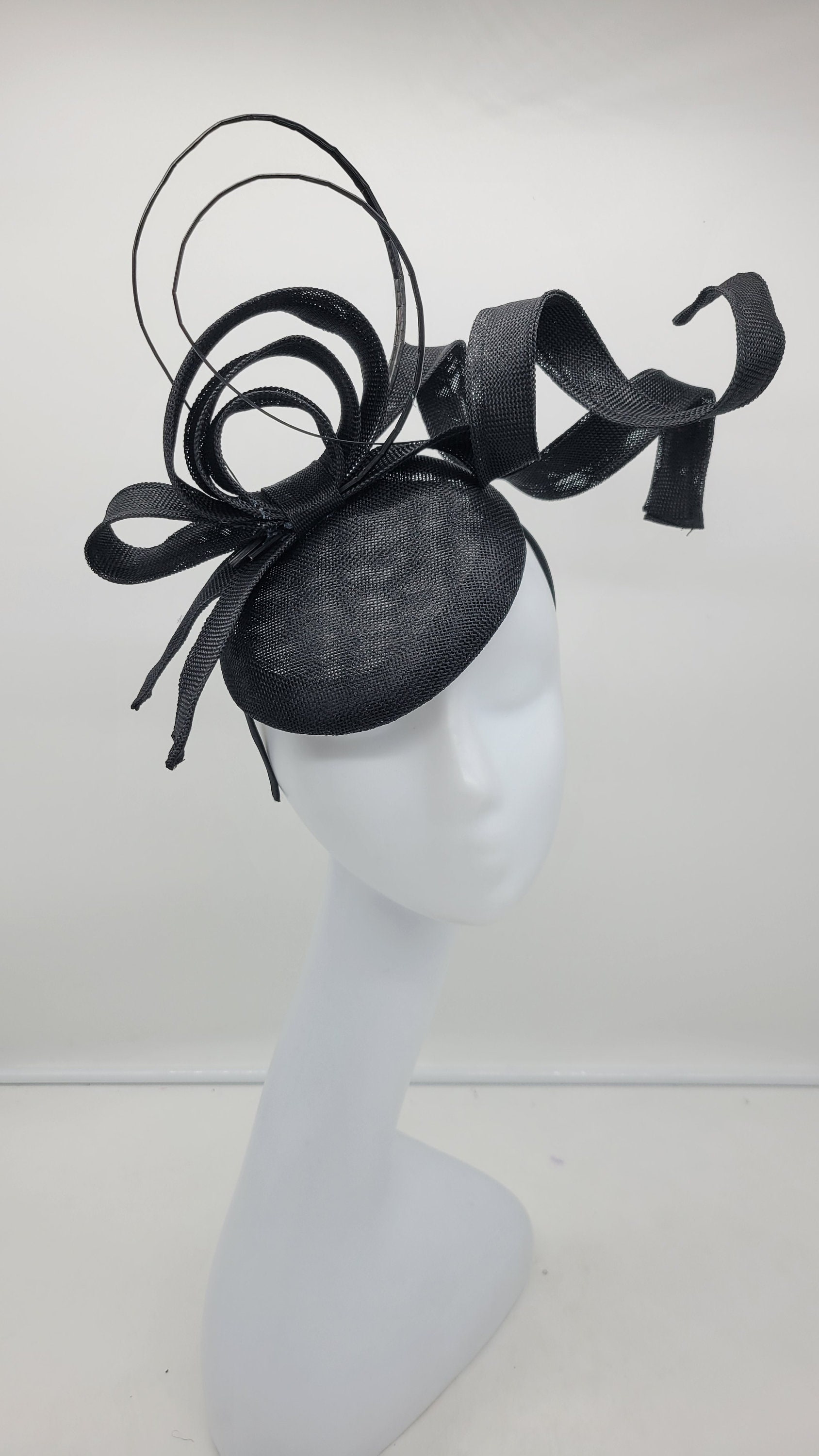 Can be customized in other colors. Made from lace, sinamay, tulle and feathers.