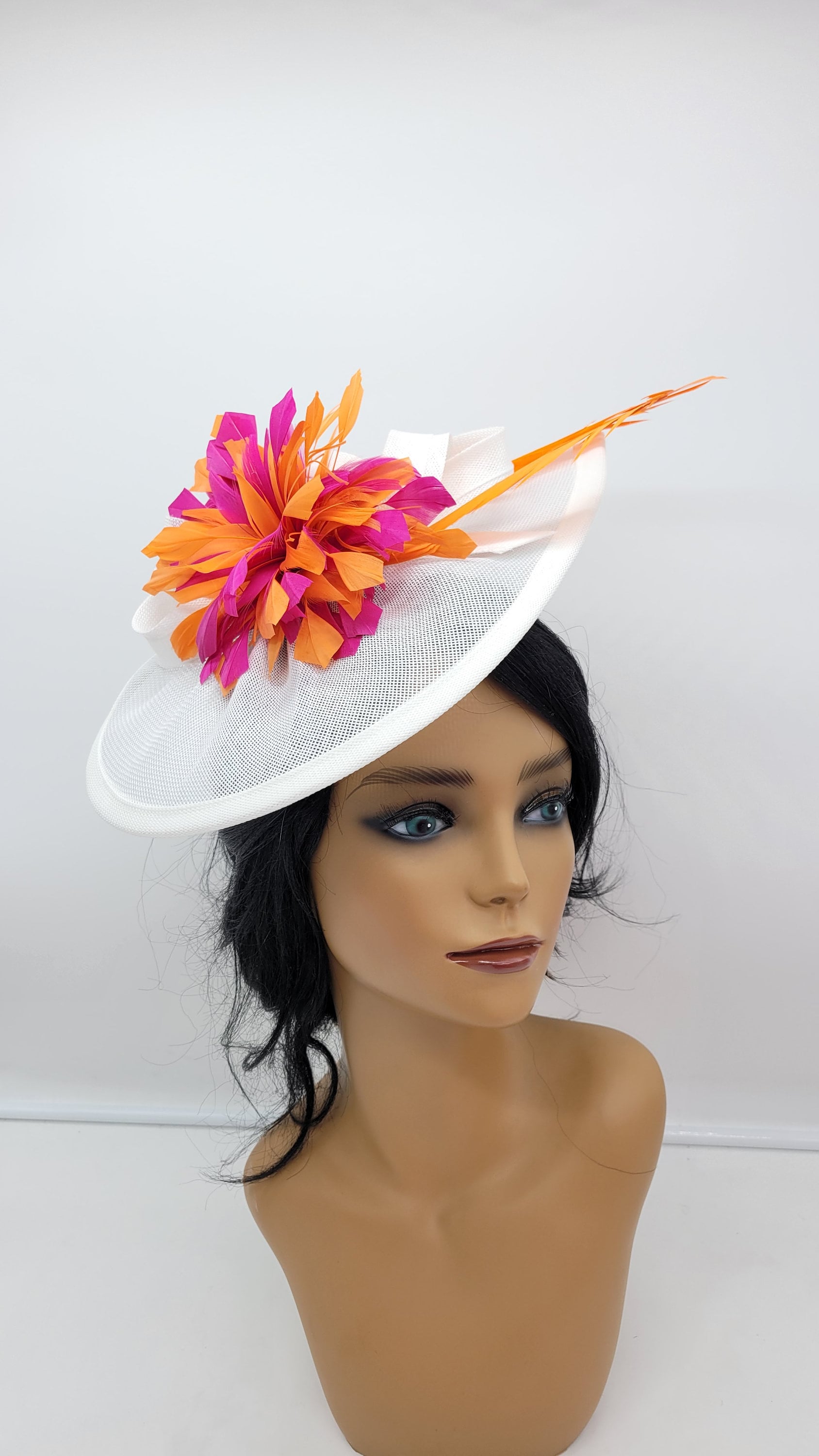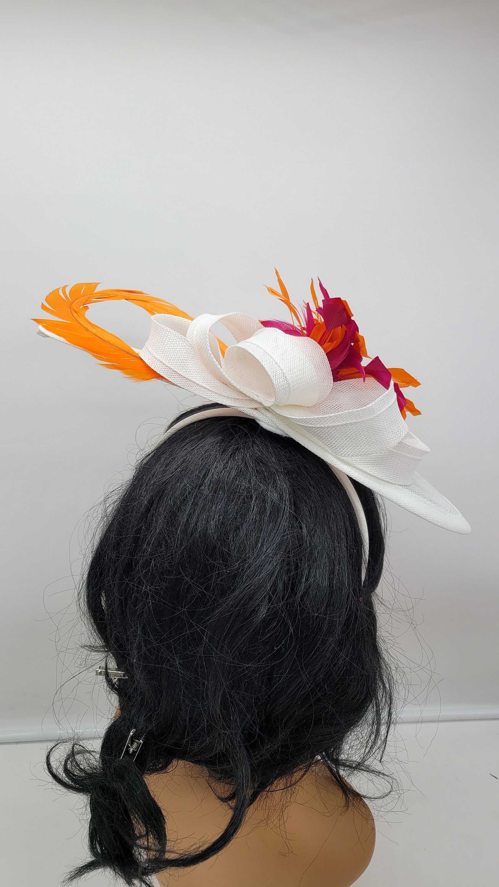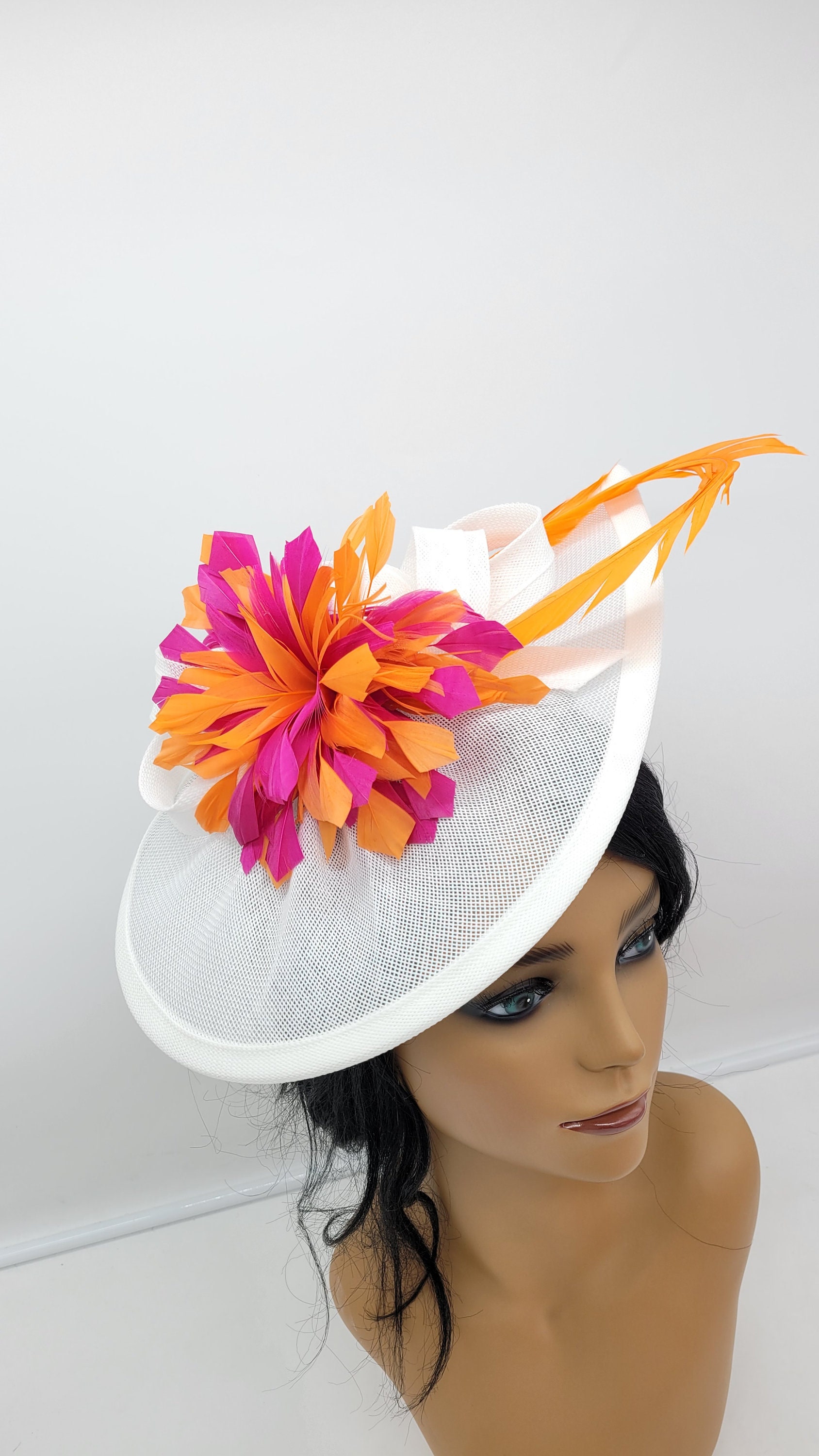 Beautiful White sinamay Fascinator. Sinamay ivory for all occasions- Bridesmaids Hat Kentucky Derby Cocktail Party Tea Party Guest Easter and so on.