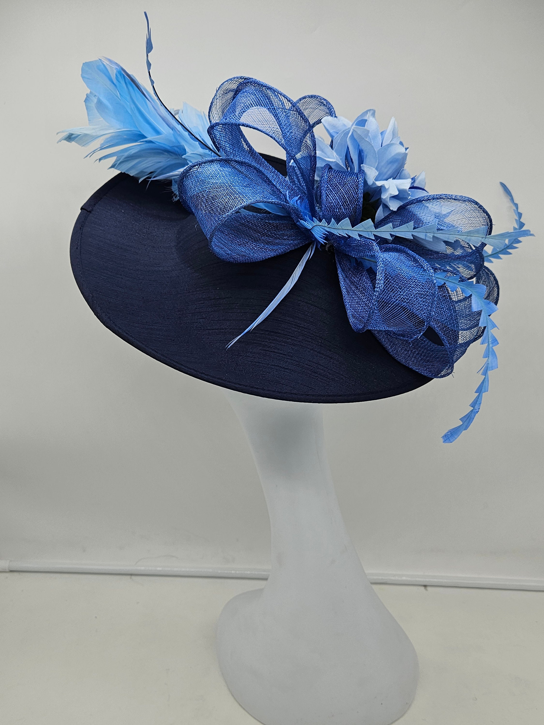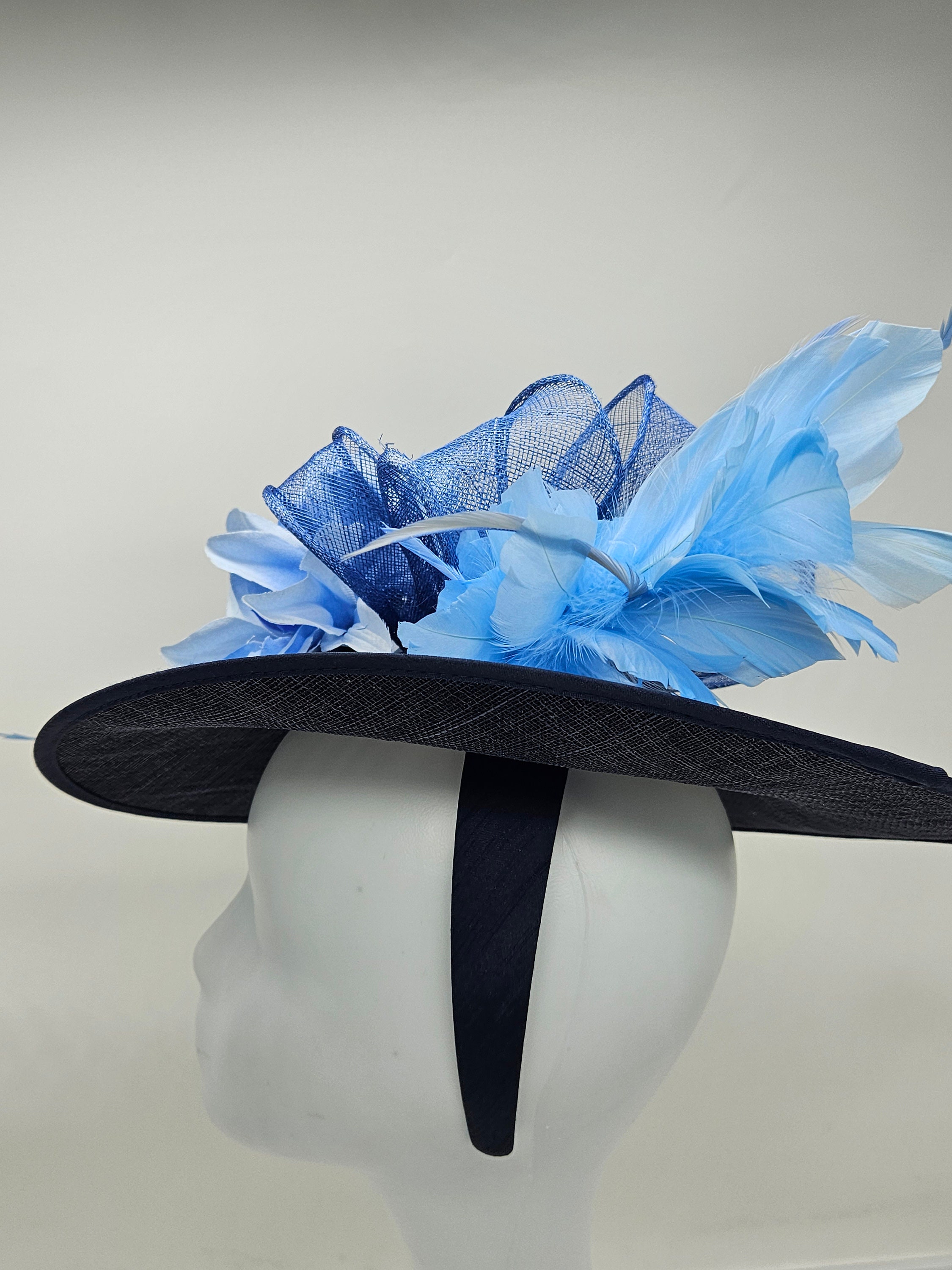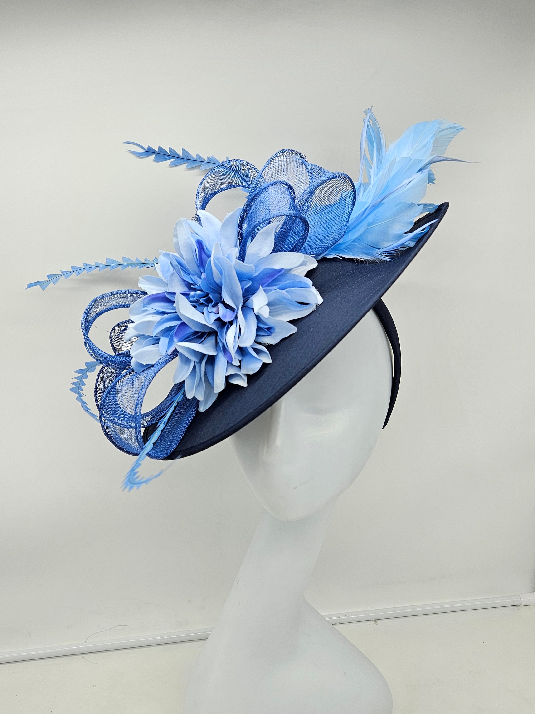 Elegant Navy blue hat. Style to go with a variety of outfits: bridesmaids, cocktail party, Kentucky Derby, Rehearsal dinner, Easter and church outfits. Ones with hair clip and headband. Are you trying to match an outfit? Send a picture and I will help you find a best hat to match your outfit.
