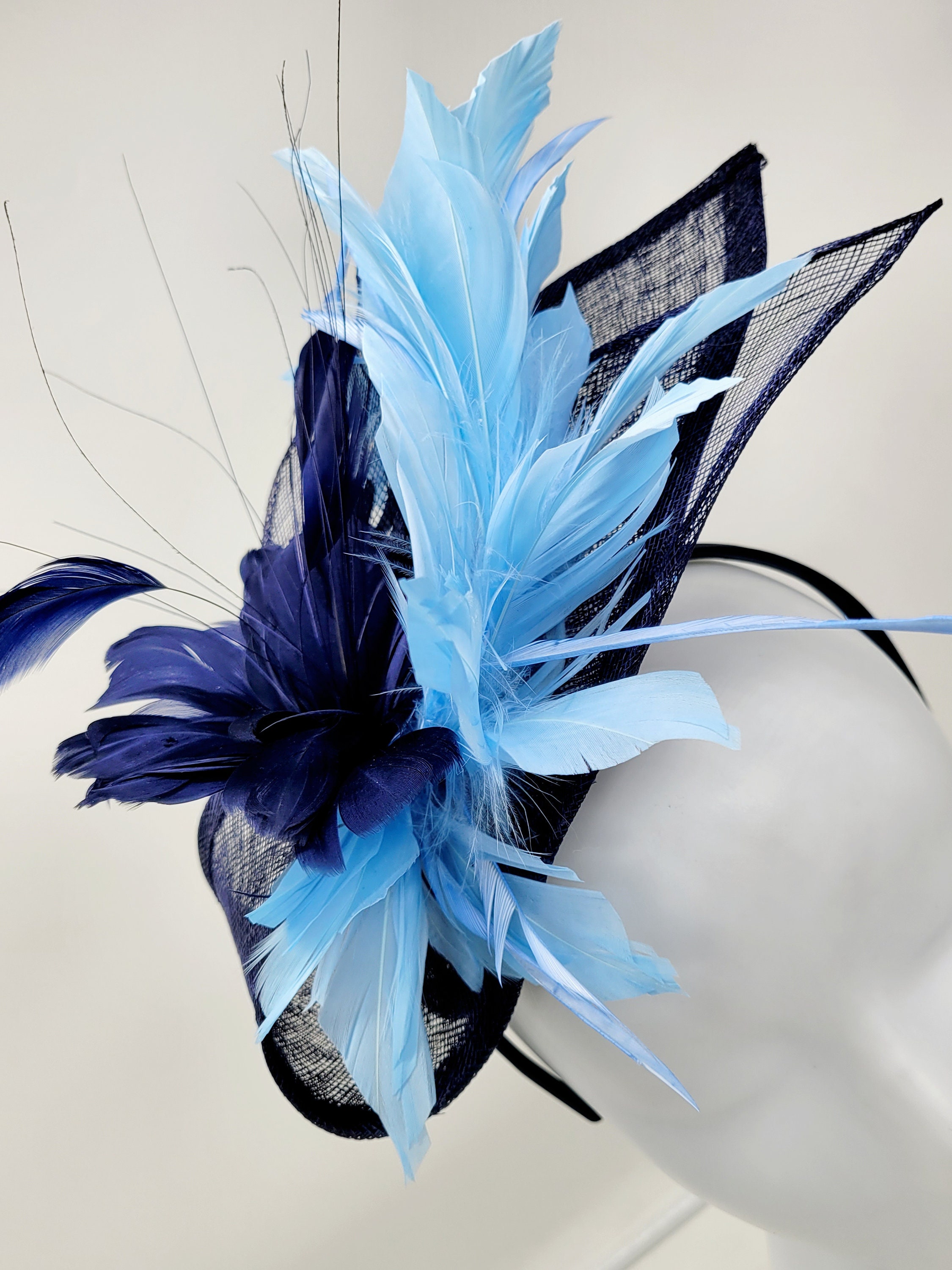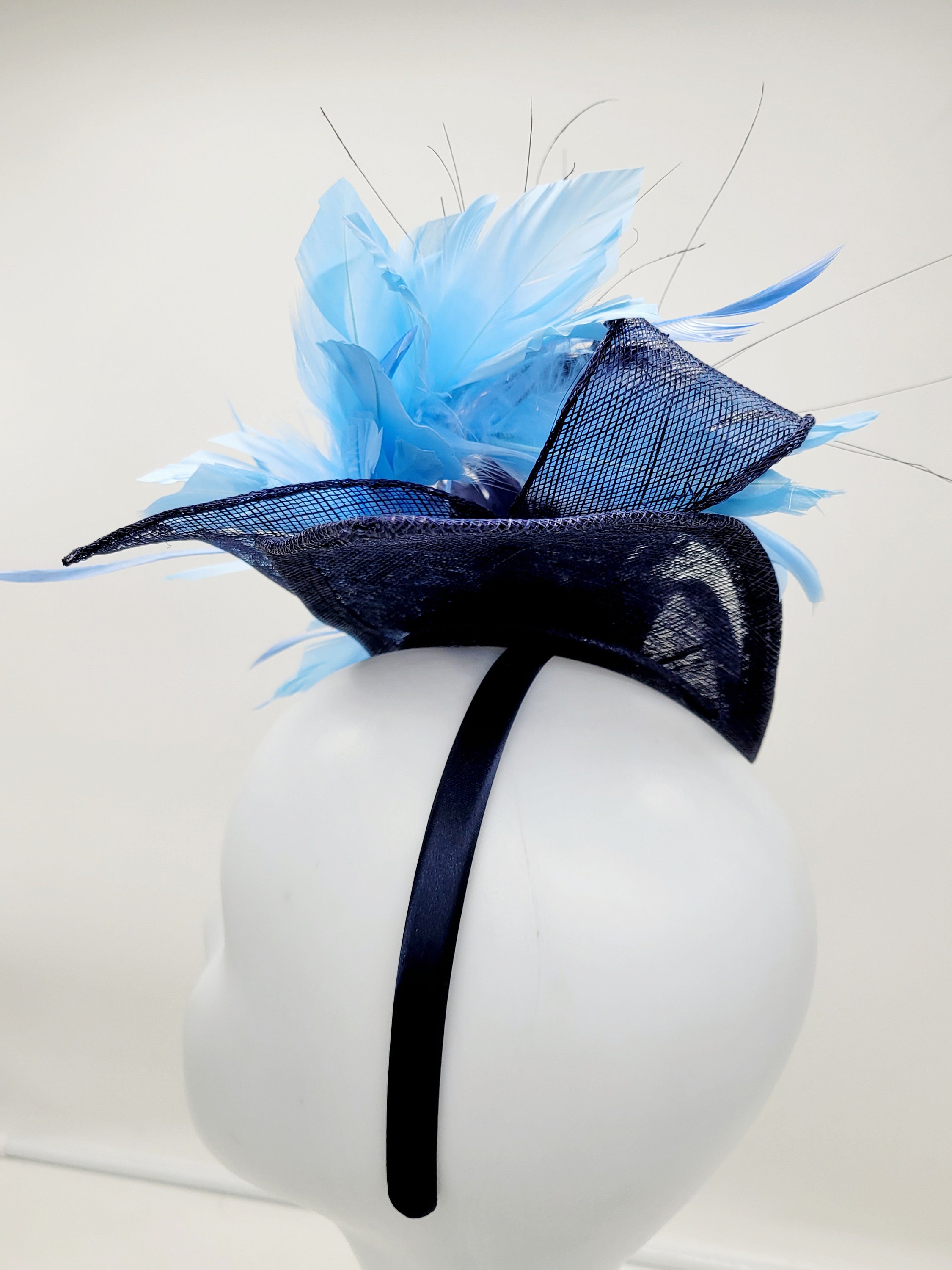 Elegant Navy blue hat. Style to go with a variety of outfits: bridesmaids, cocktail party, Kentucky Derby, Rehearsal dinner, Easter and church outfits. Ones with hair clip and headband. Are you trying to match an outfit? Send a picture and I will help you find a best hat to match your outfit.