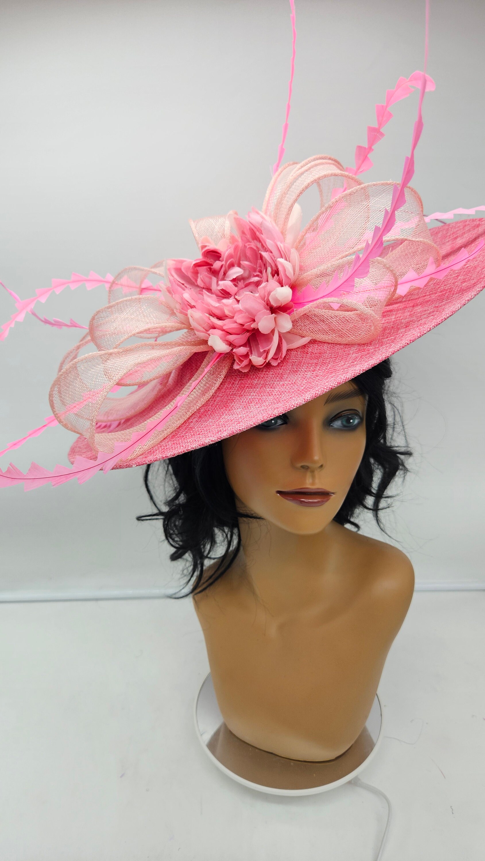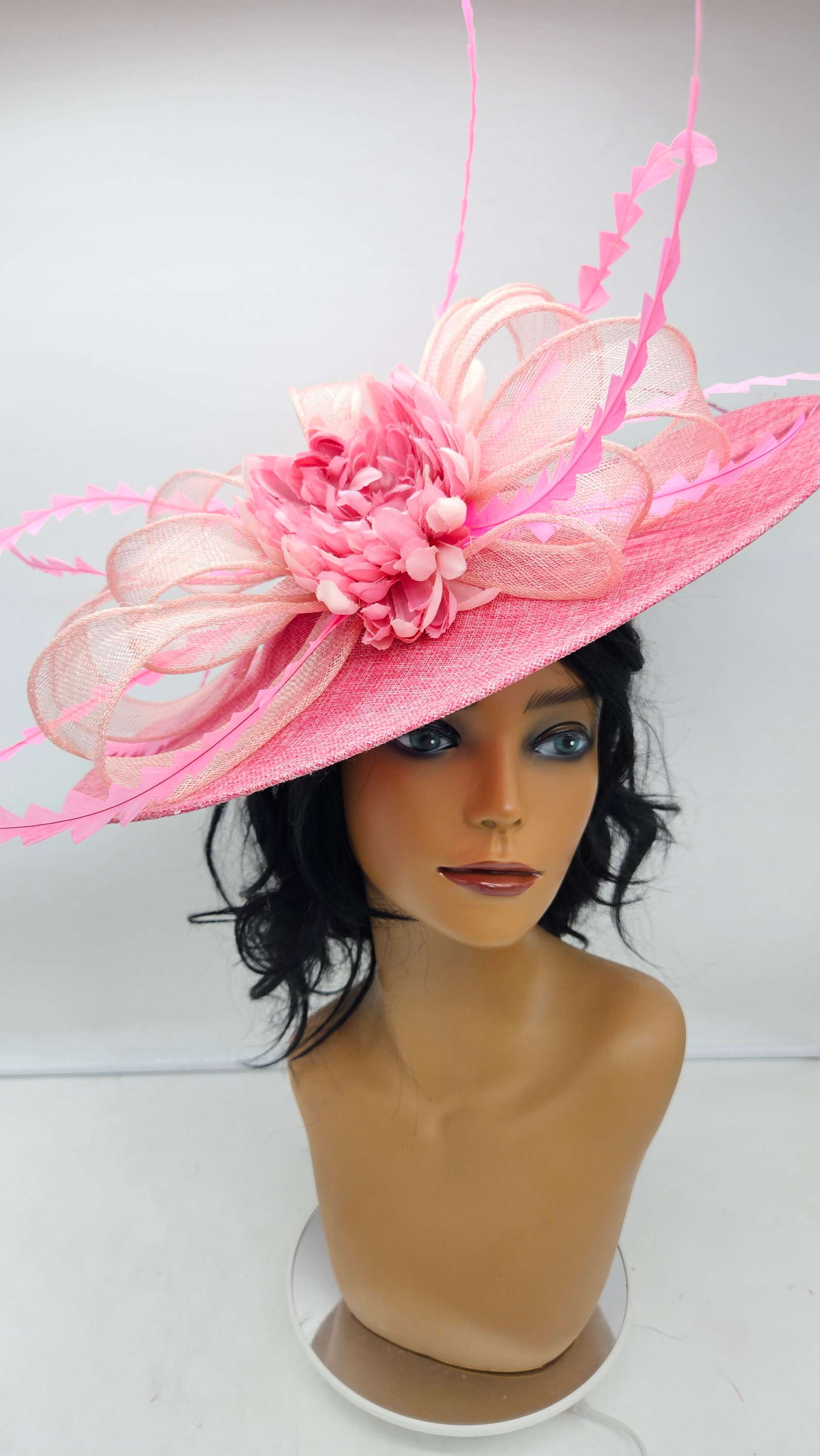 Beautiful sinamay Fascinator. Option to use veil or not. Sinamay Pink Wedding Fascinator Bridesmaids Hat Kentucky Derby Cocktail Party Tea Party Guest Easter Kate Middleton -