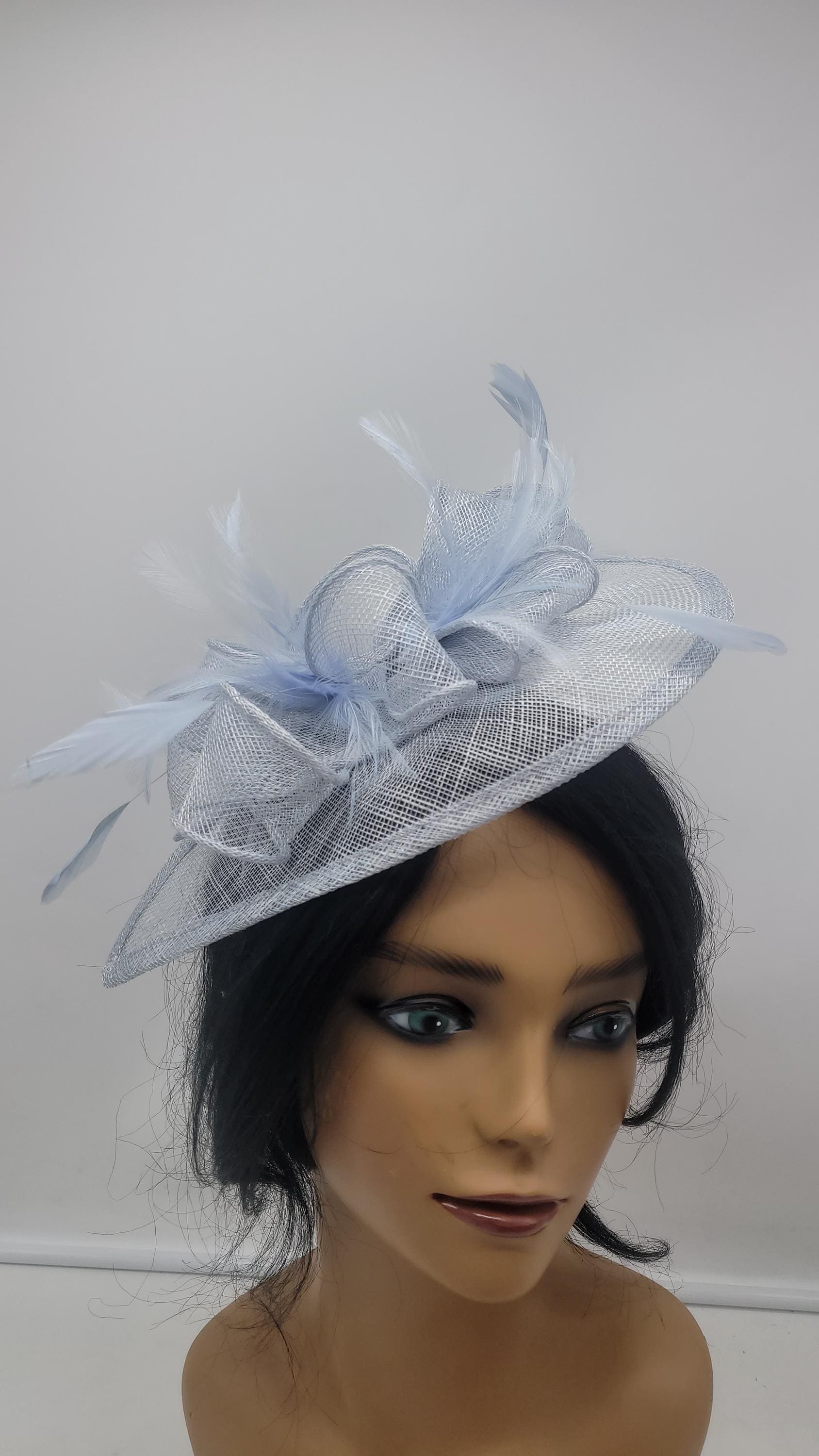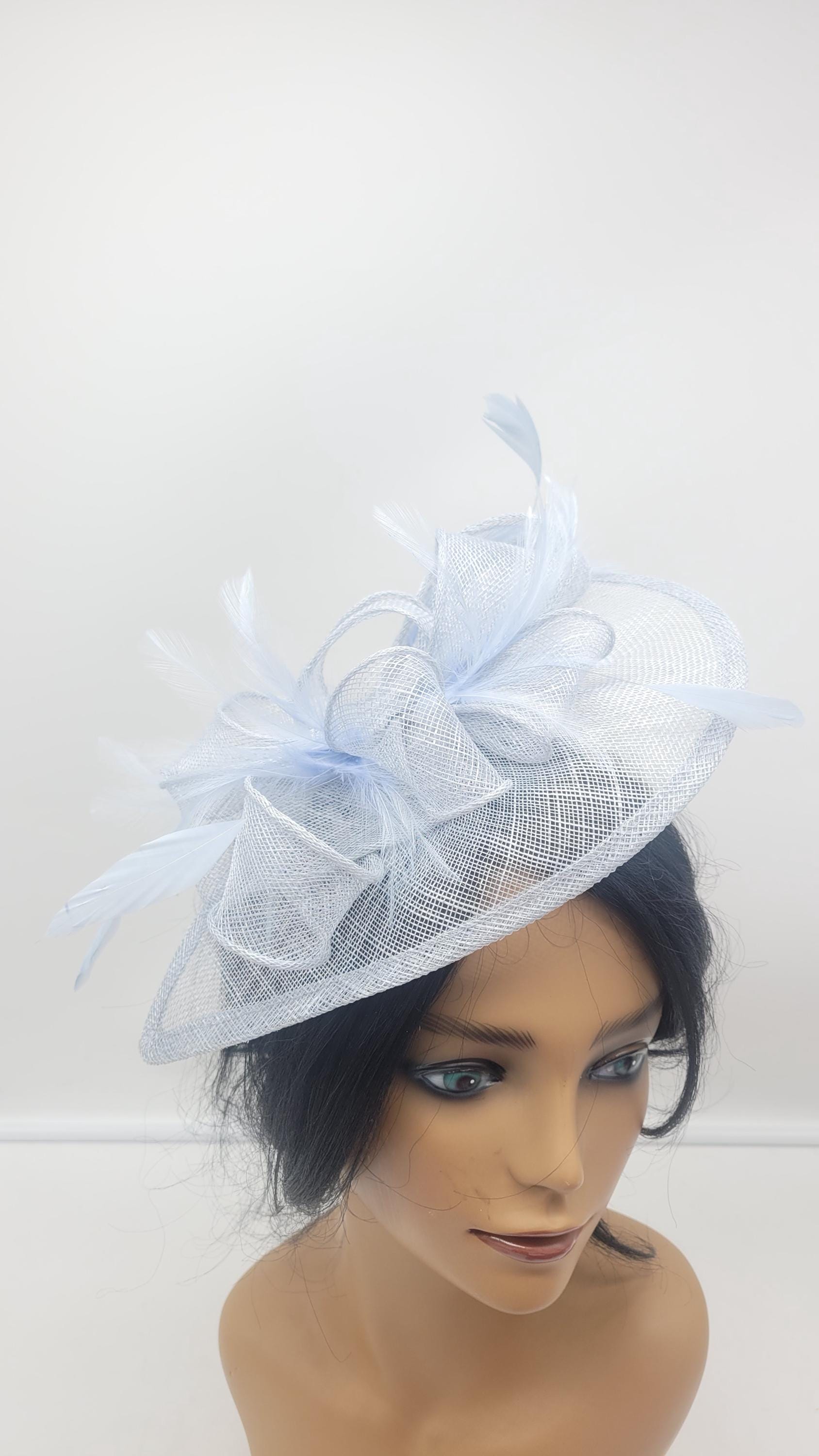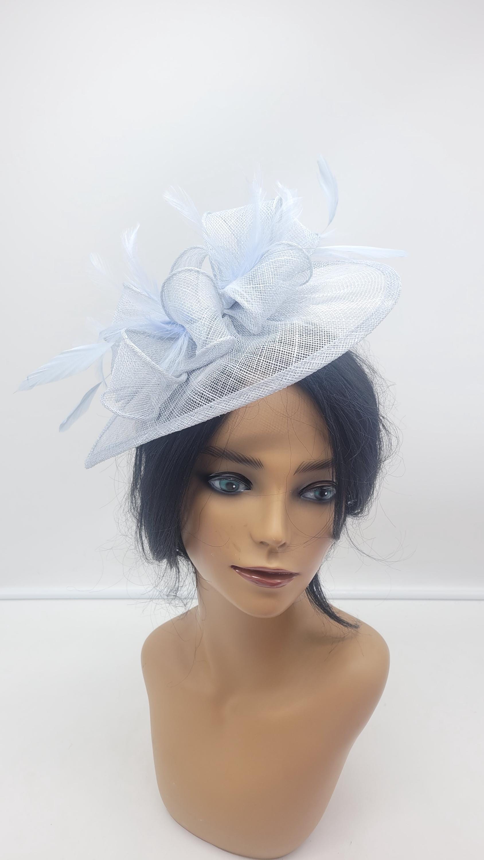 Elegant light Blue sinamay Fascinator. This will be a great way to add elegance to any, bridesmaid, rehearsal dinner, Wedding guest, cocktail party, or church outfit. Also, comes in Hot Pink, blush, white, ivory and other colors