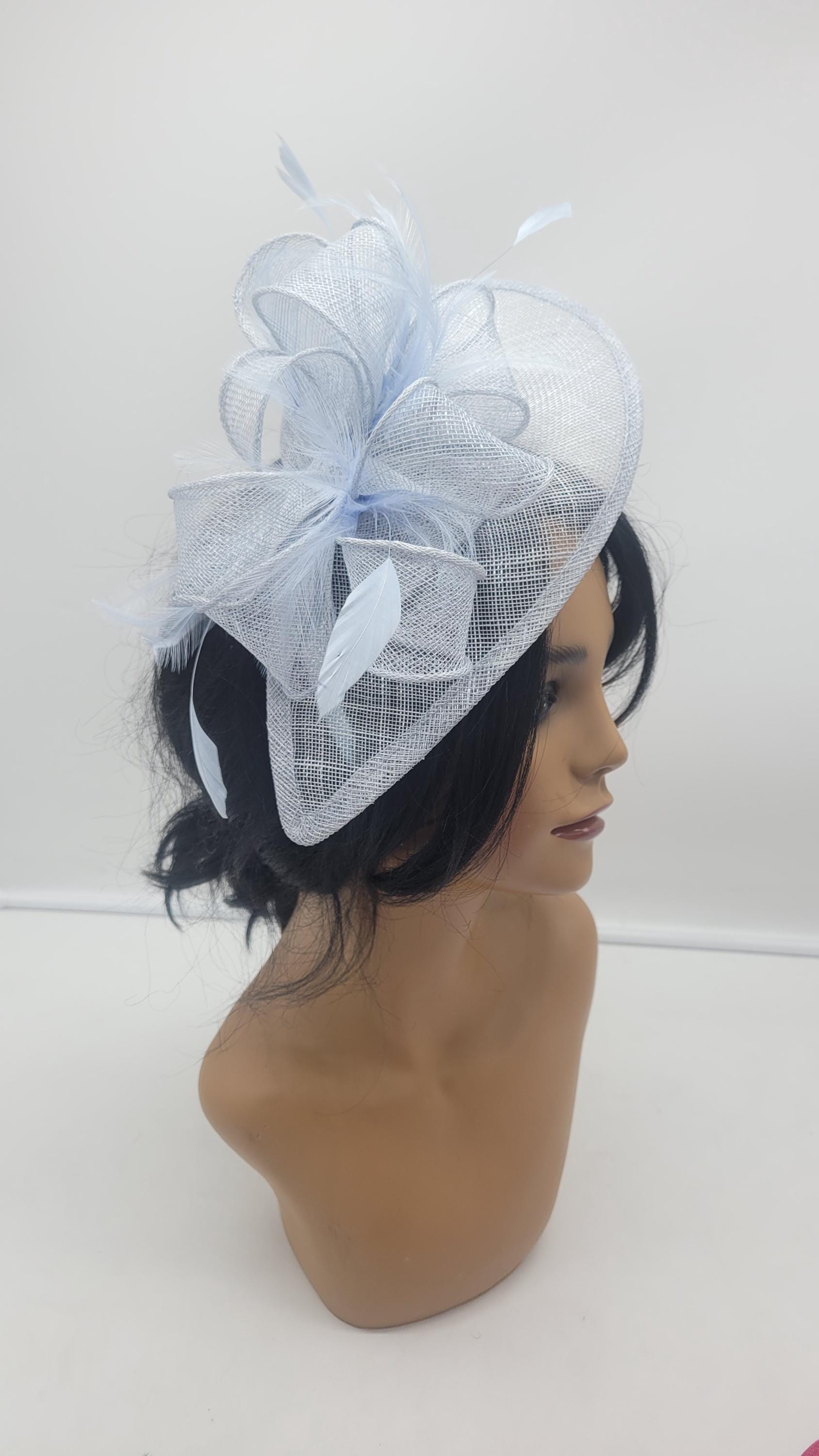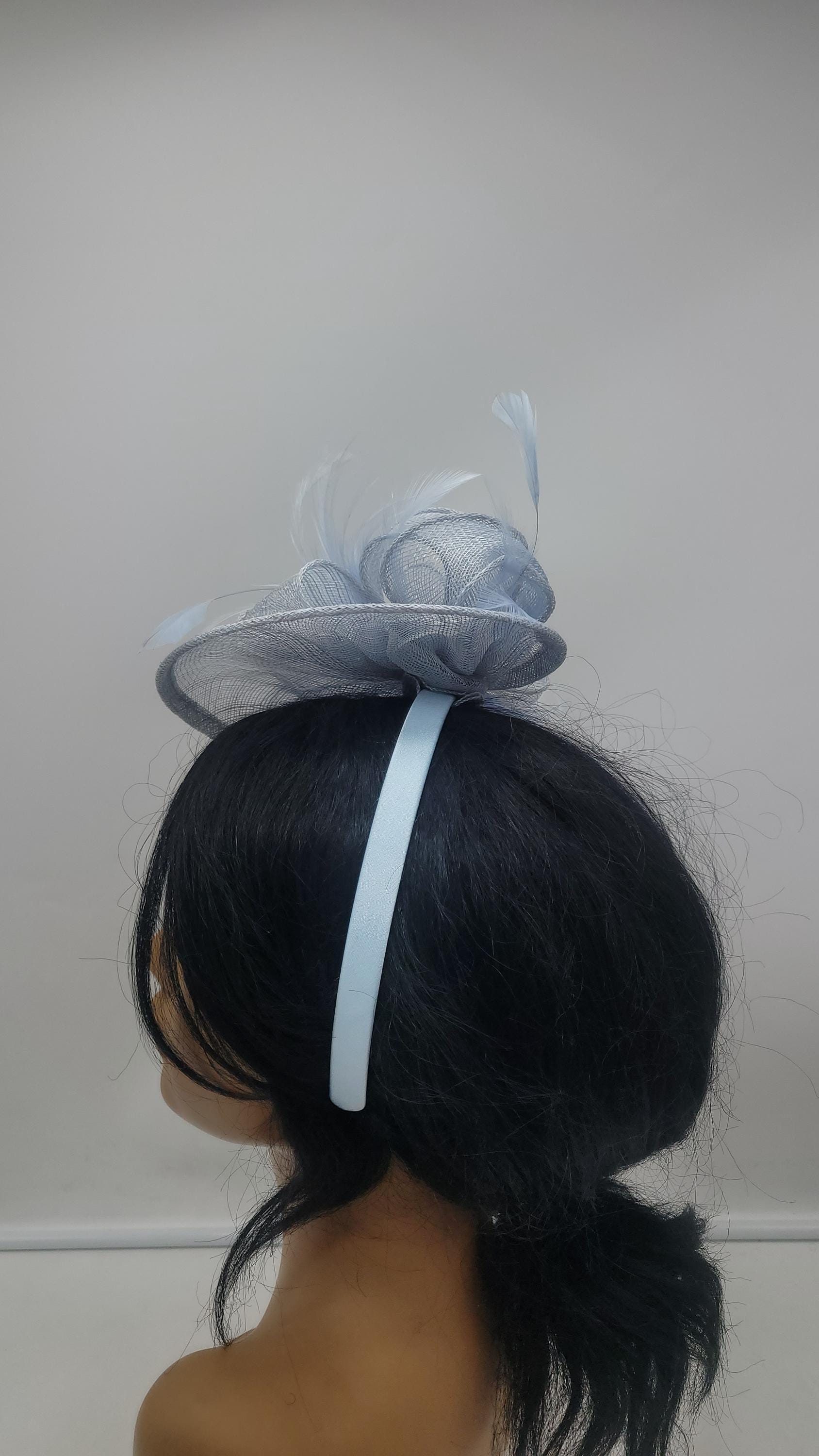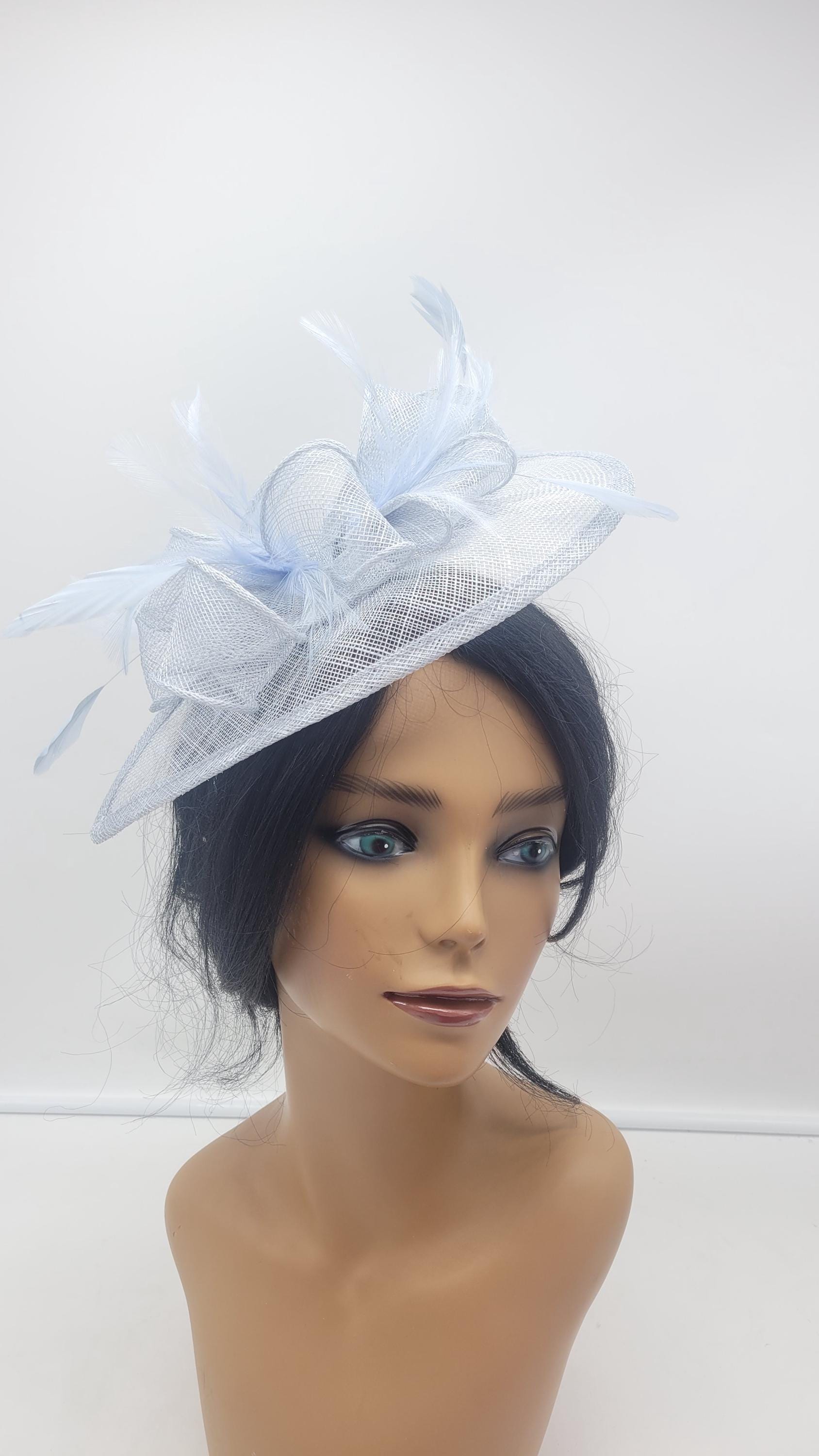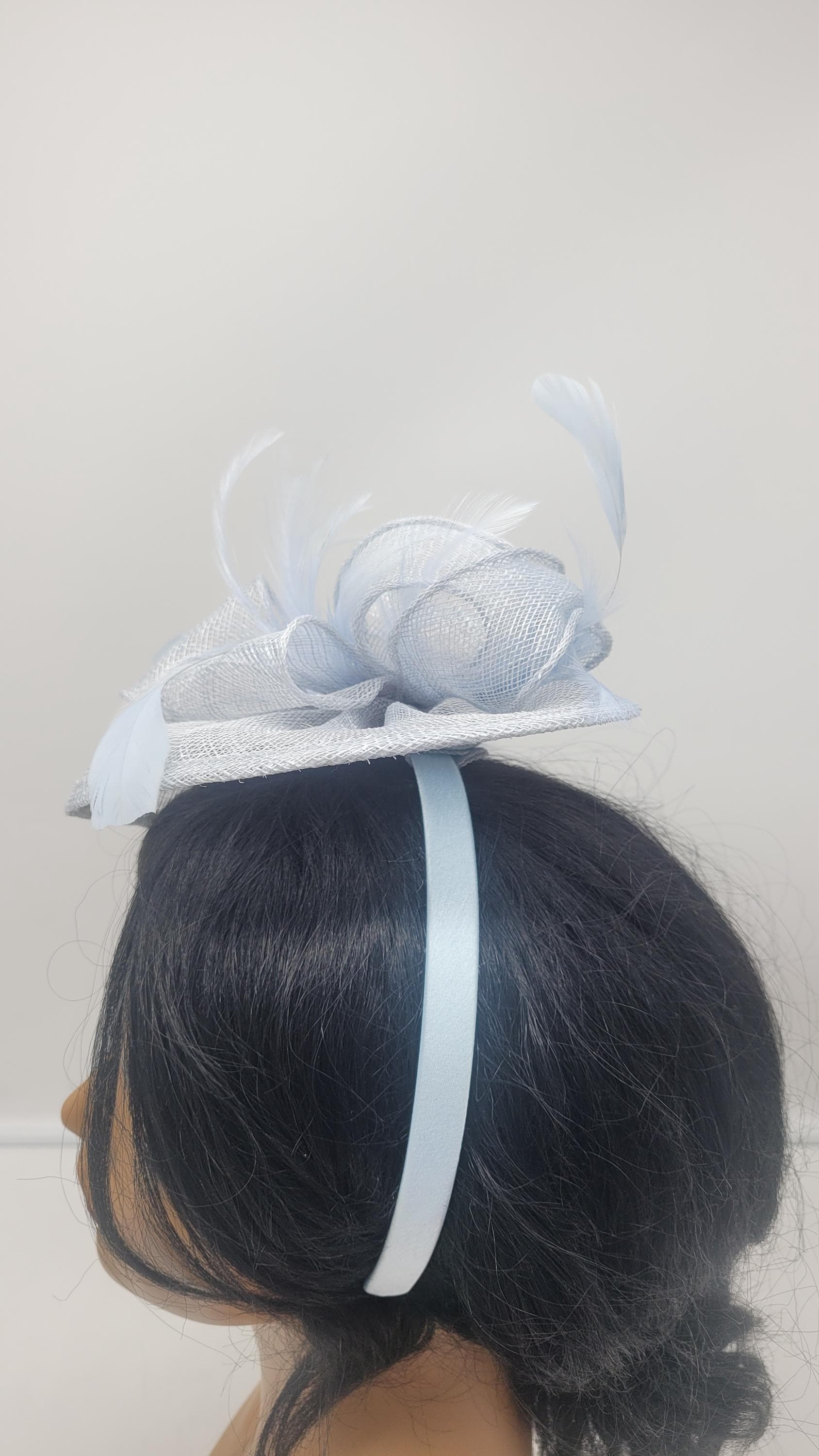 Elegant light Blue sinamay Fascinator. This will be a great way to add elegance to any, bridesmaid, rehearsal dinner, Wedding guest, cocktail party, or church outfit. Also, comes in Hot Pink, blush, white, ivory and other colors