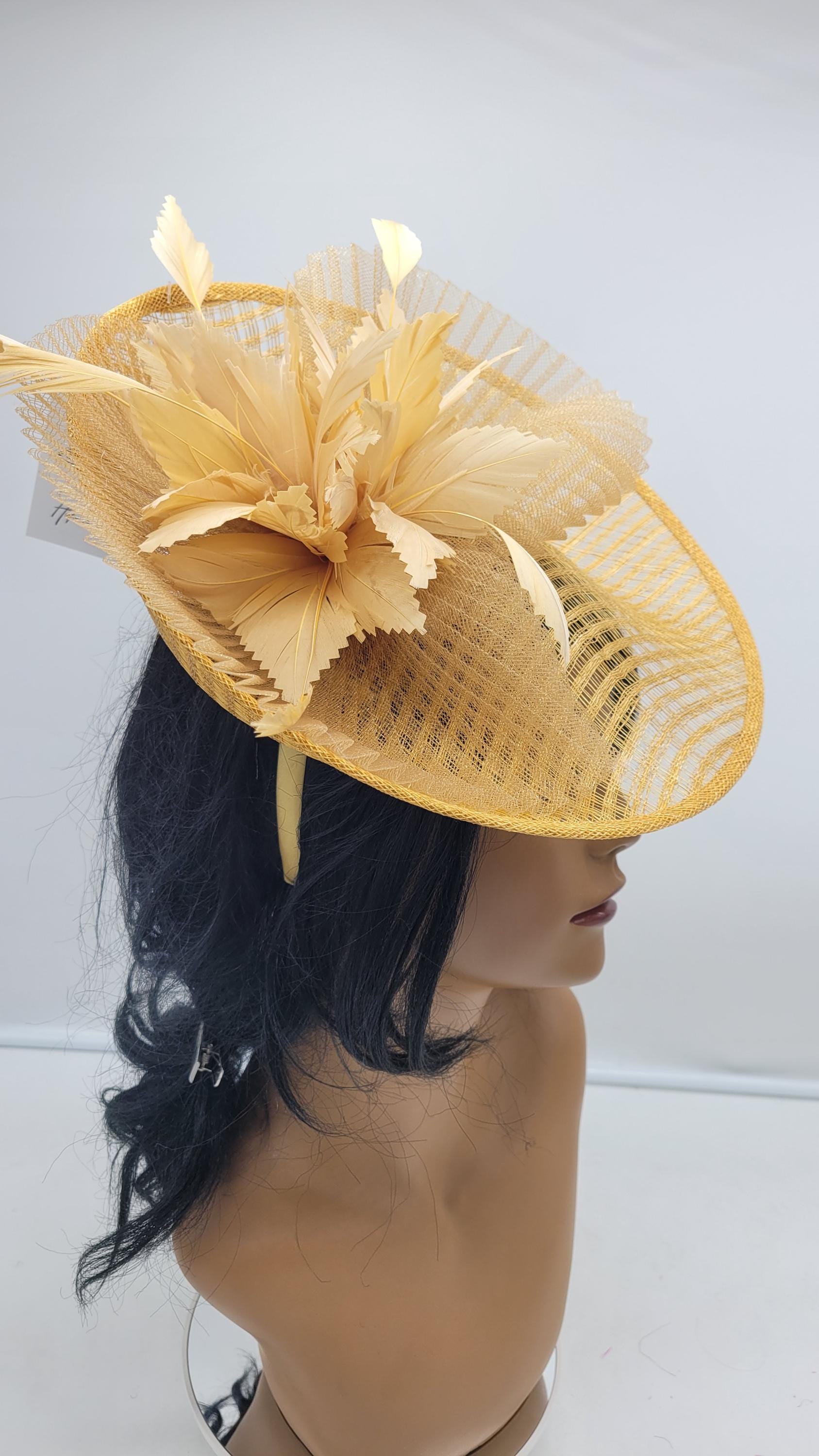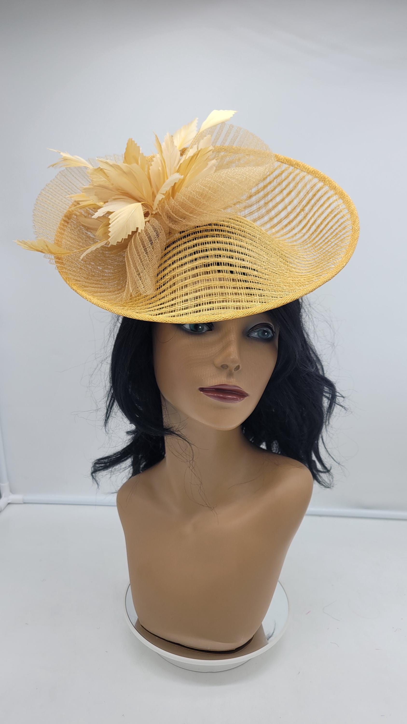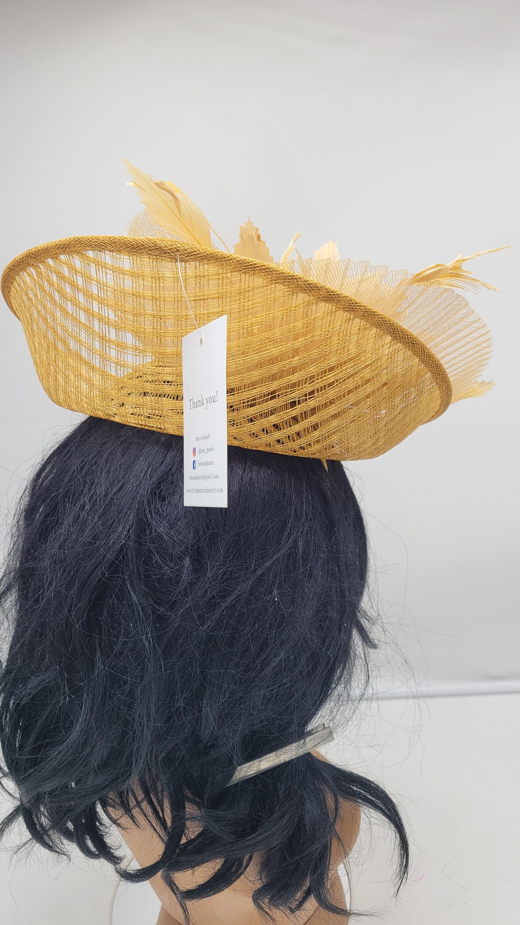 Beautiful sinamay Fascinator with crinoline and feathers. Gold Wedding Fascinator Bridesmaids Hat Kentucky Derby Cocktail Party Tea Party Guest Easter Kate Middleton