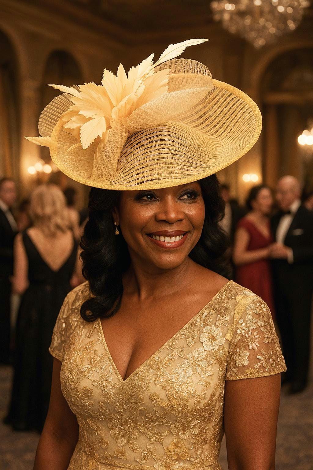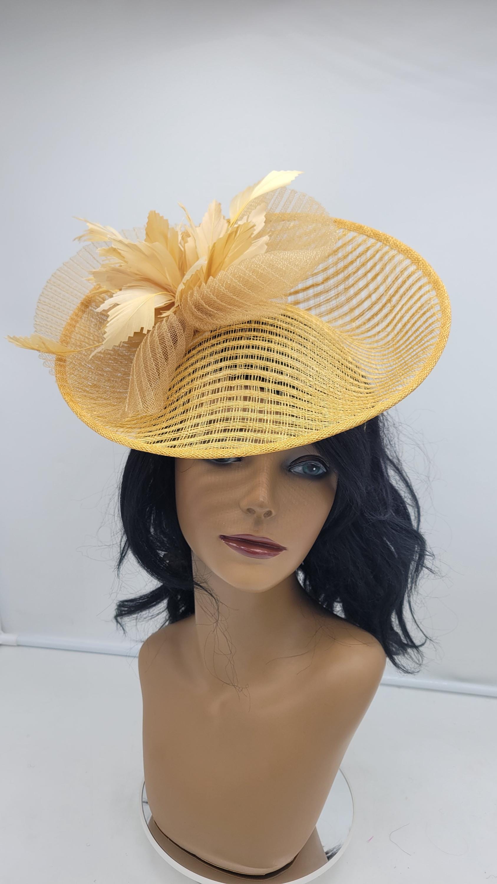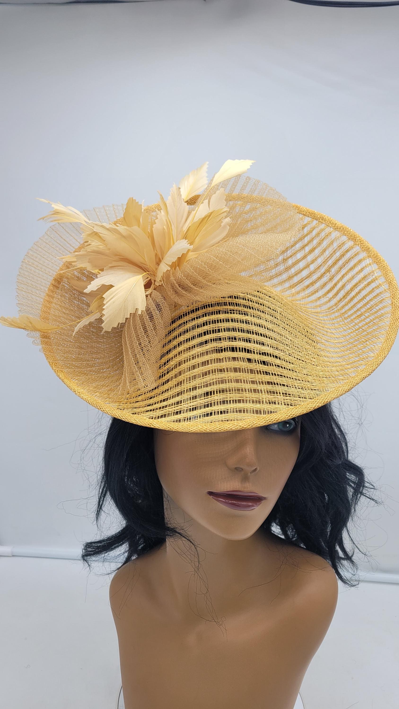 Beautiful sinamay Fascinator with crinoline and feathers. Gold Wedding Fascinator Bridesmaids Hat Kentucky Derby Cocktail Party Tea Party Guest Easter Kate Middleton