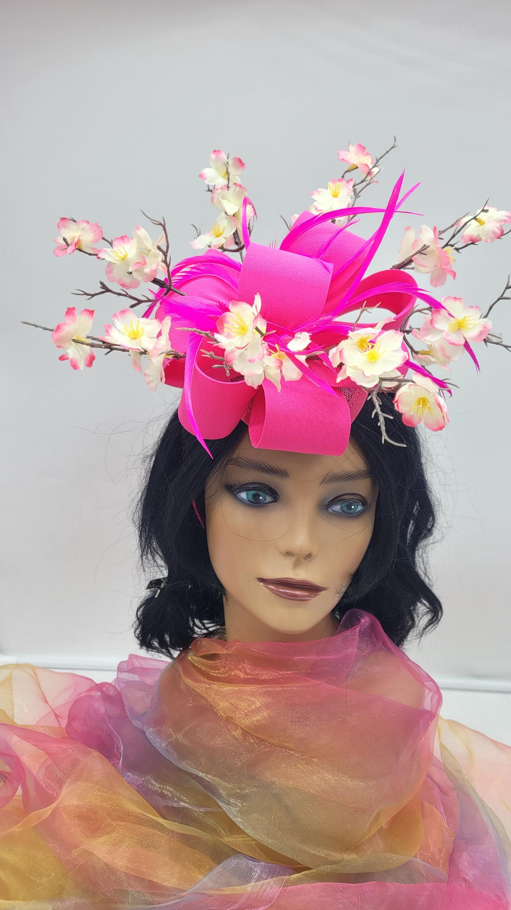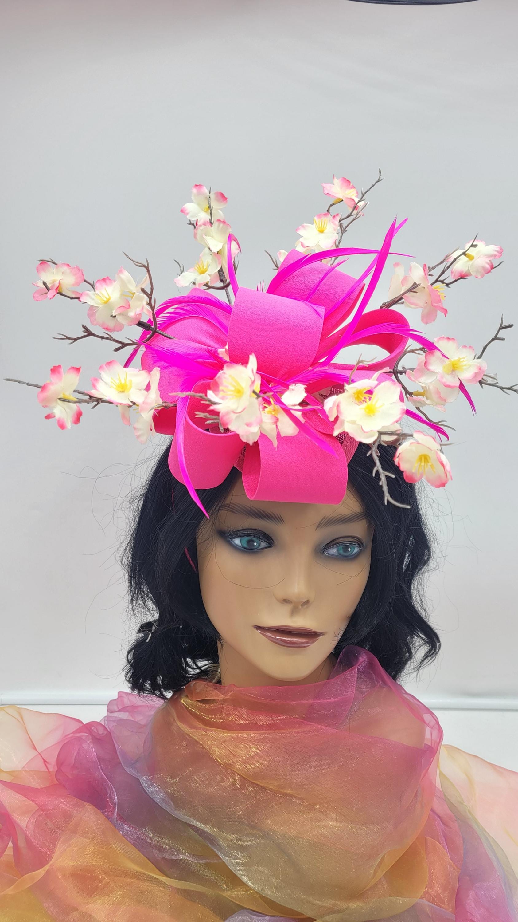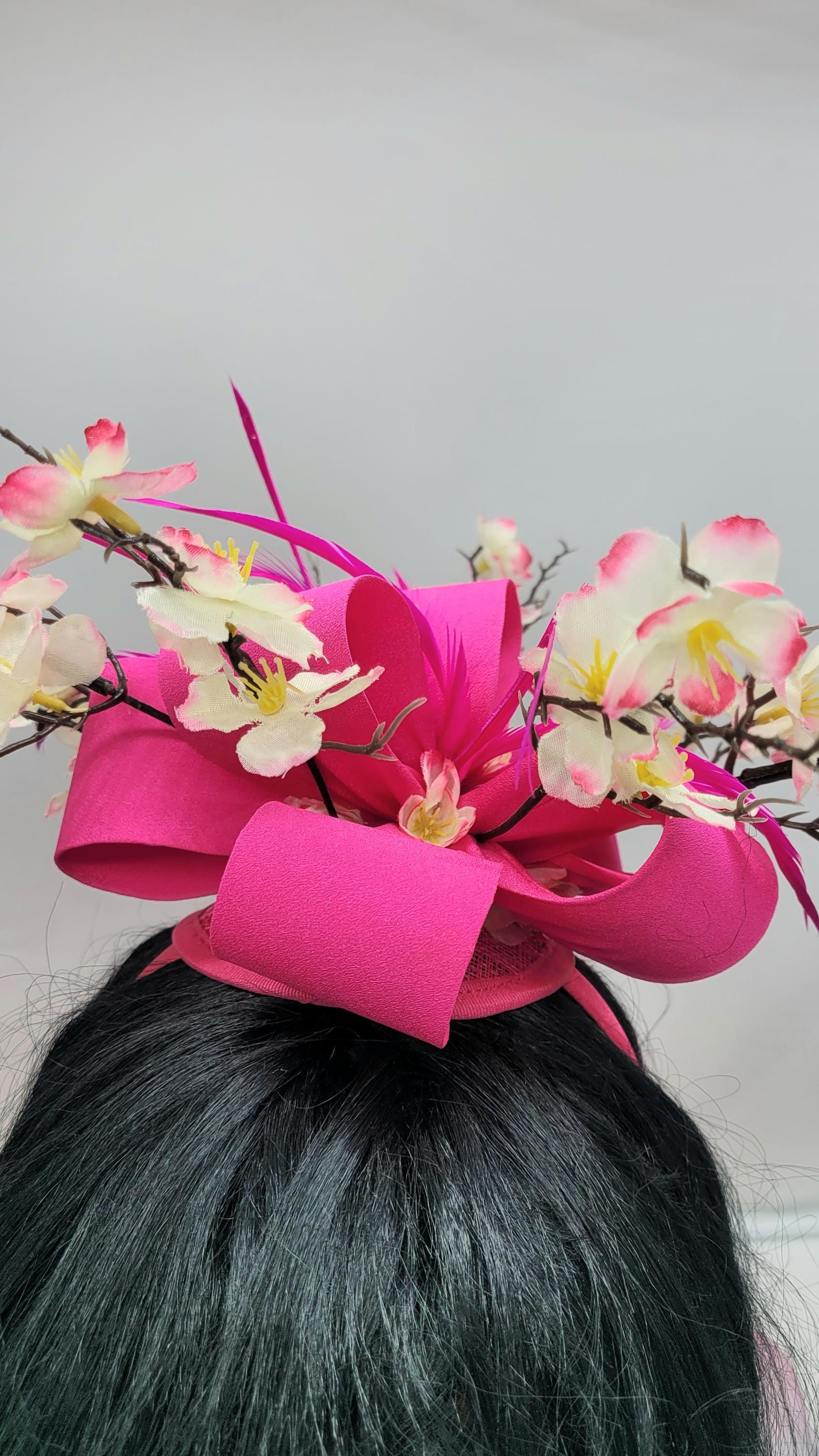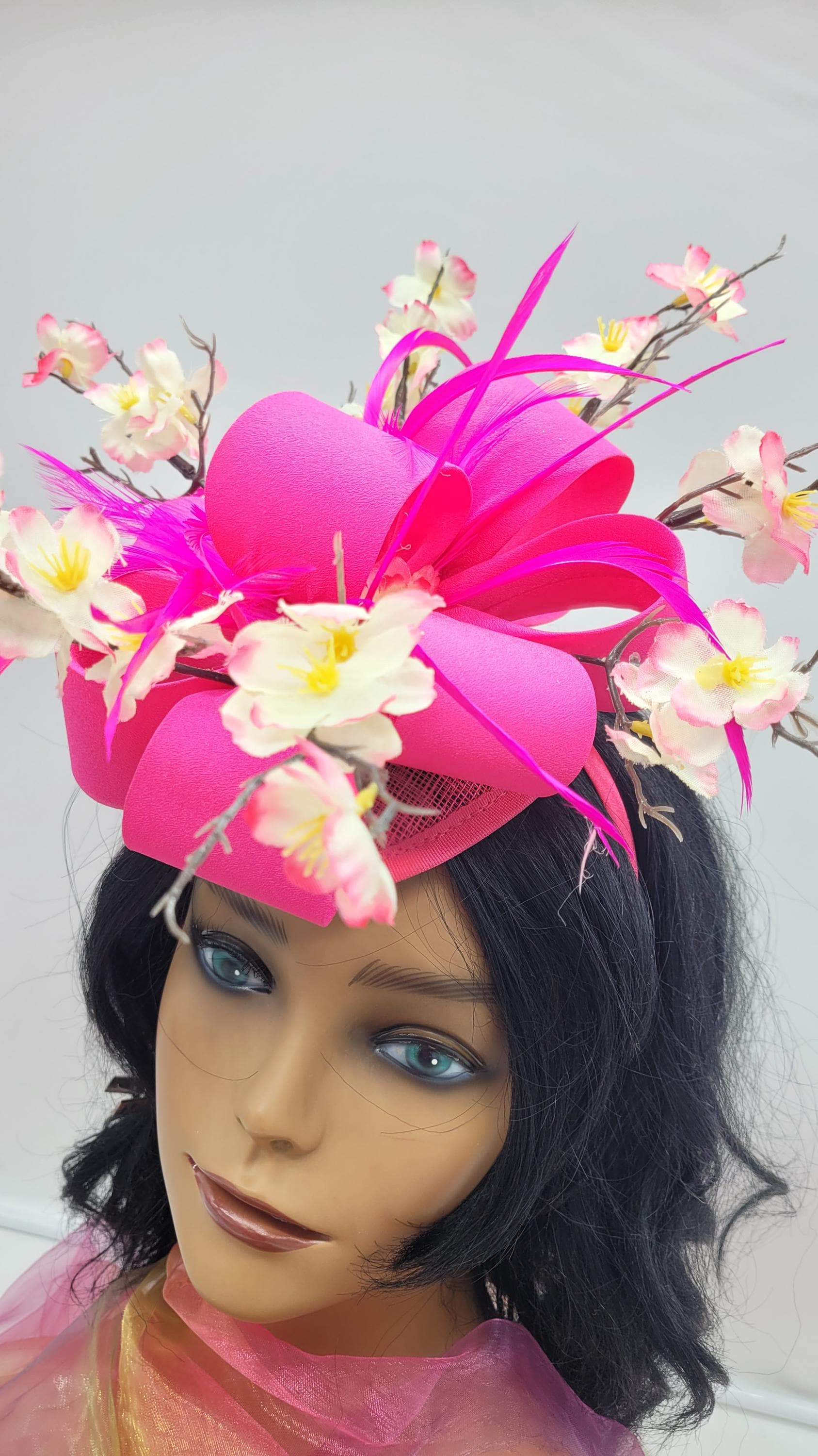 Elegant Hot Pink with Pink Fascinator. Comes with clips and headband for a secured and comfortable look. This will be a great way to add elegance to any, bridesmaid, rehearsal dinner, Wedding guest, cocktail party, or church outfit.