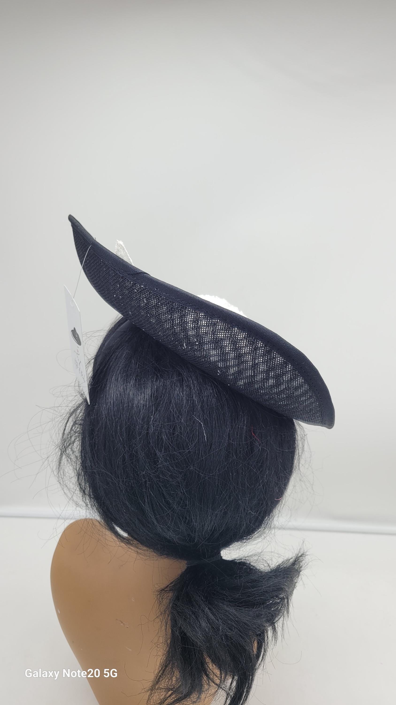 Beautiful Black and White Hat. Large brim. Black Wedding Hat, Fascinator Bridesmaids Hat Kentucky Derby, Cocktail Party, Tea Party, funeral