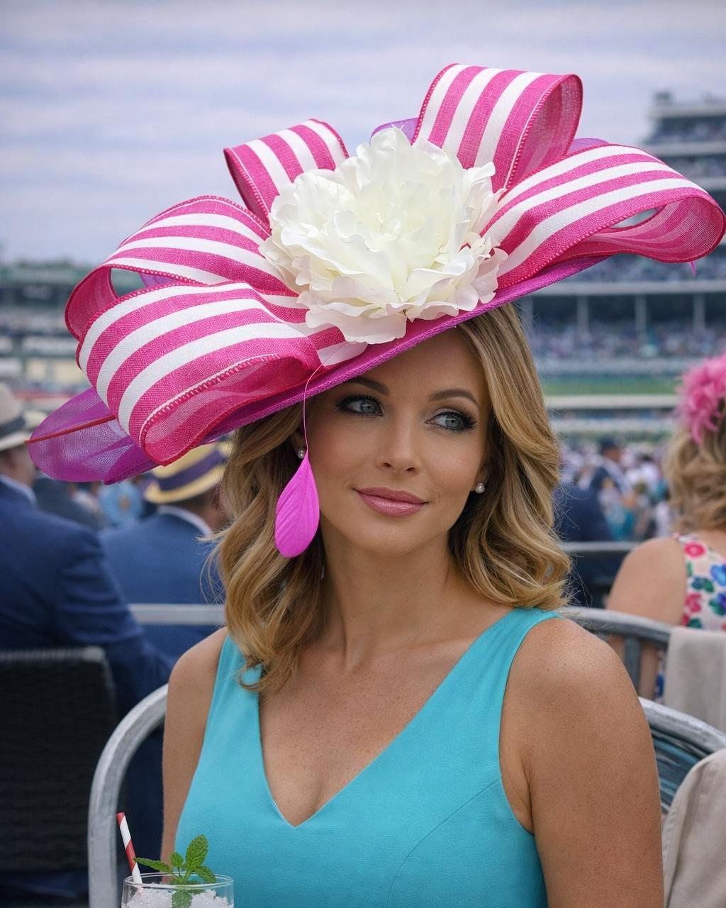 hot pink and white for Wedding Fascinator Bridesmaids Hat Kentucky Derby Cocktail Party Tea Party Guest Easter Kate Middleton.