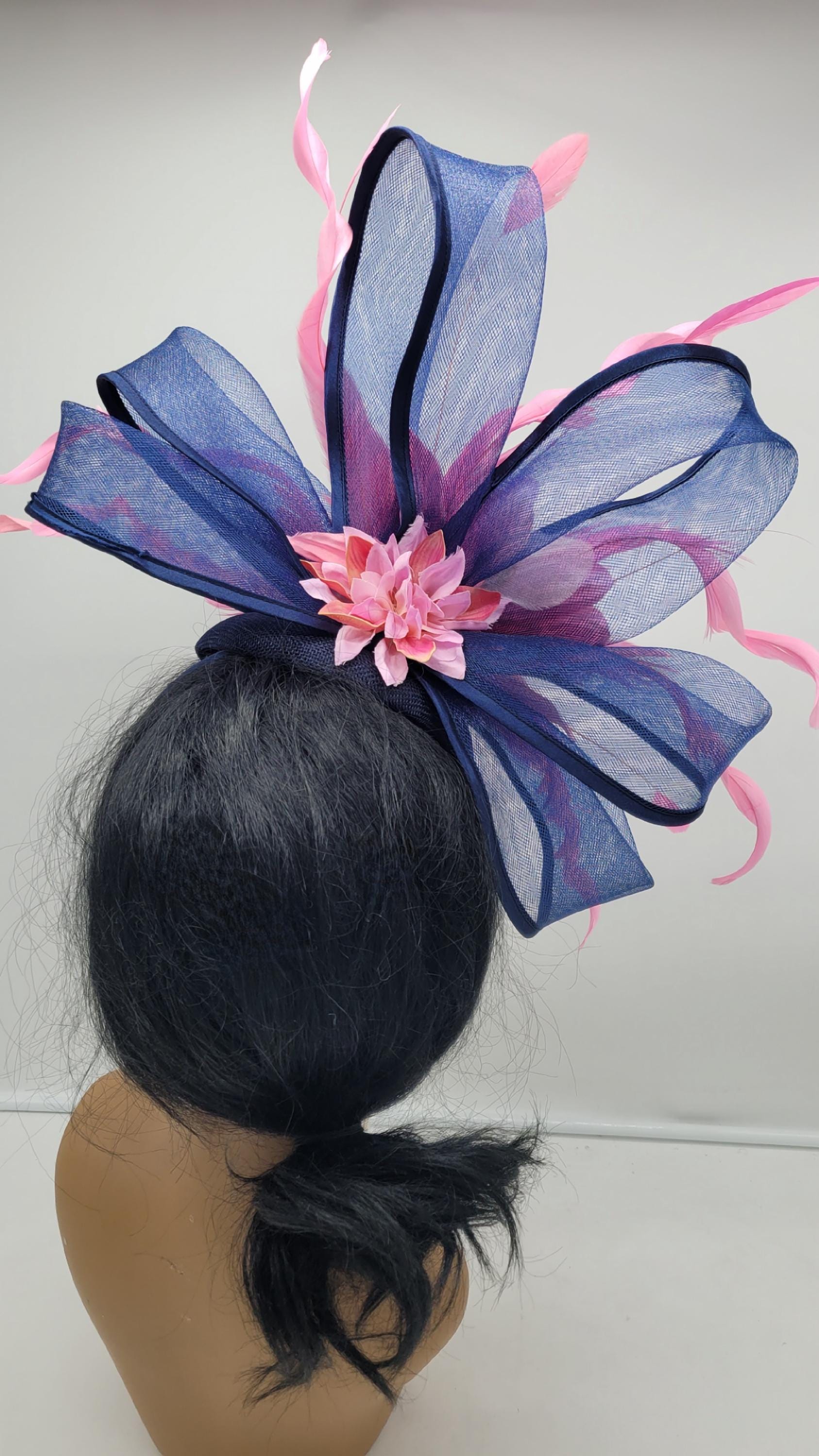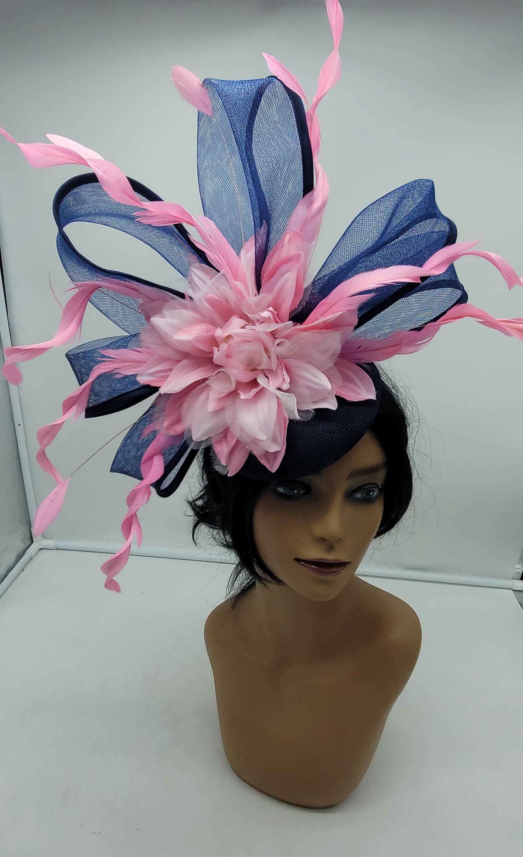 Elegant Navy blue hat. Style to go with a variety of outfits: bridesmaids, cocktail party, Kentucky Derby, Rehearsal dinner, Easter and church outfits. Ones with hair clip and headband. Are you trying to match an outfit? Send a picture and I will help you find a best hat to match your outfit.