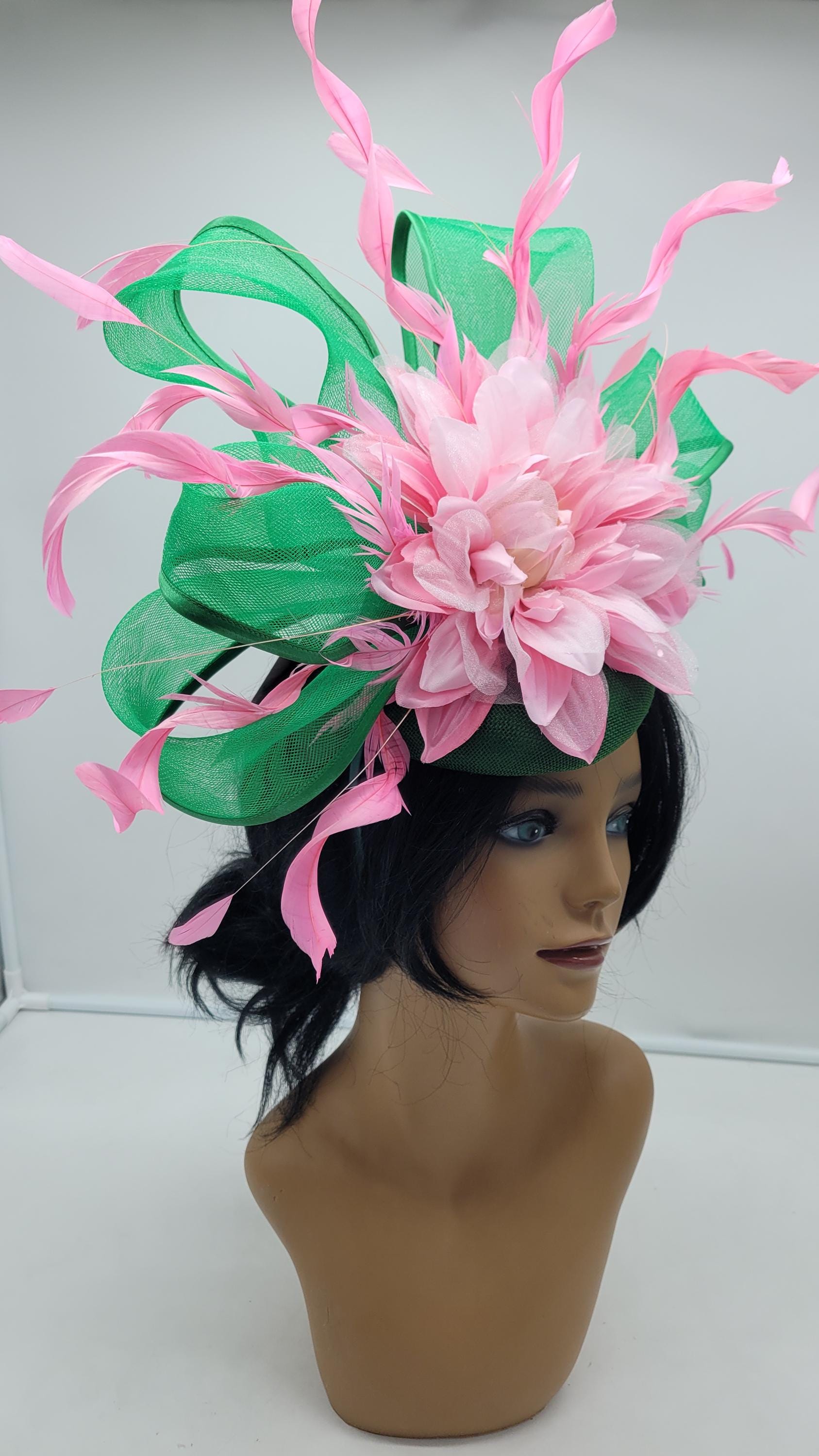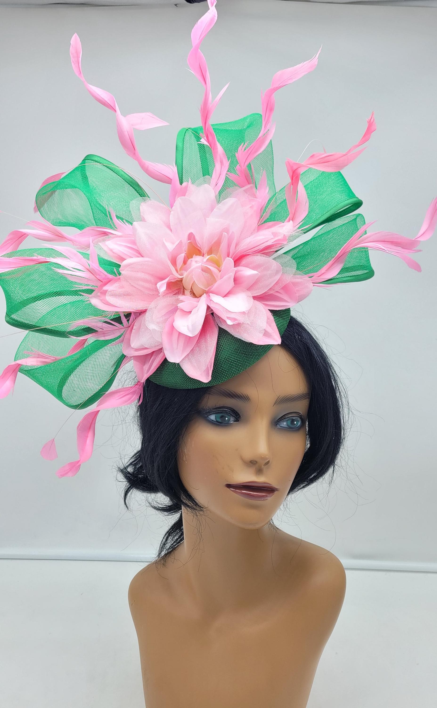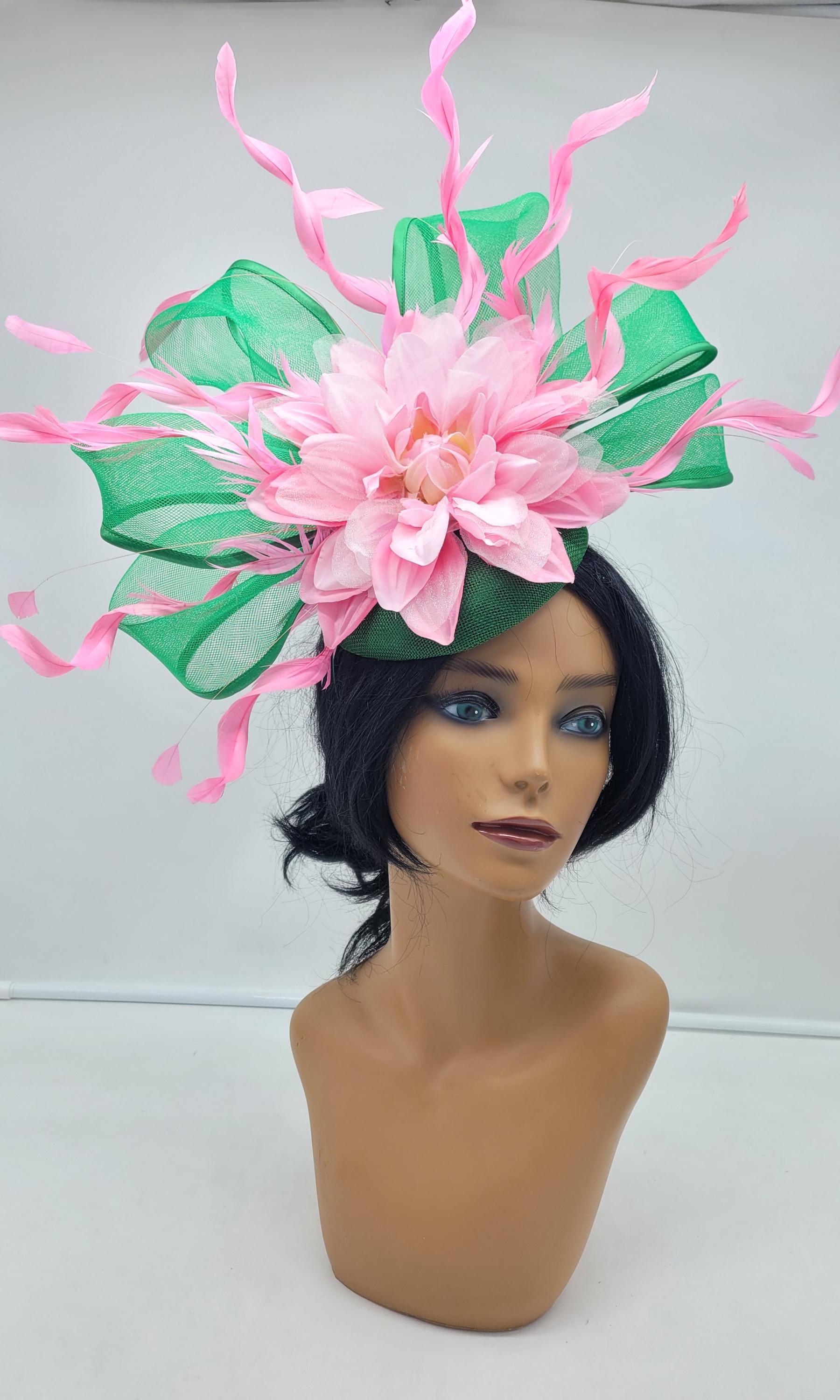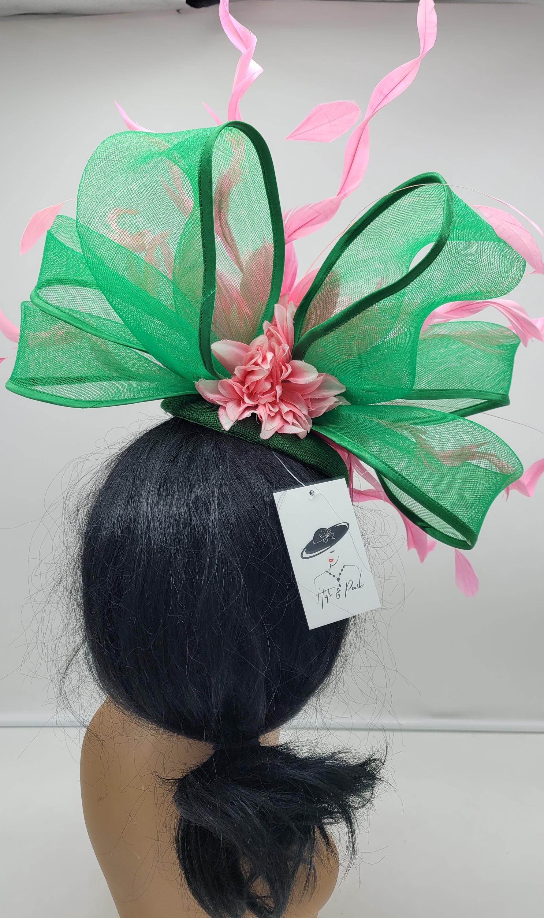 Green and Pink crinoline Fascinator. Show stopper!!. Comes with a pin or headband for an elegant but secure look.