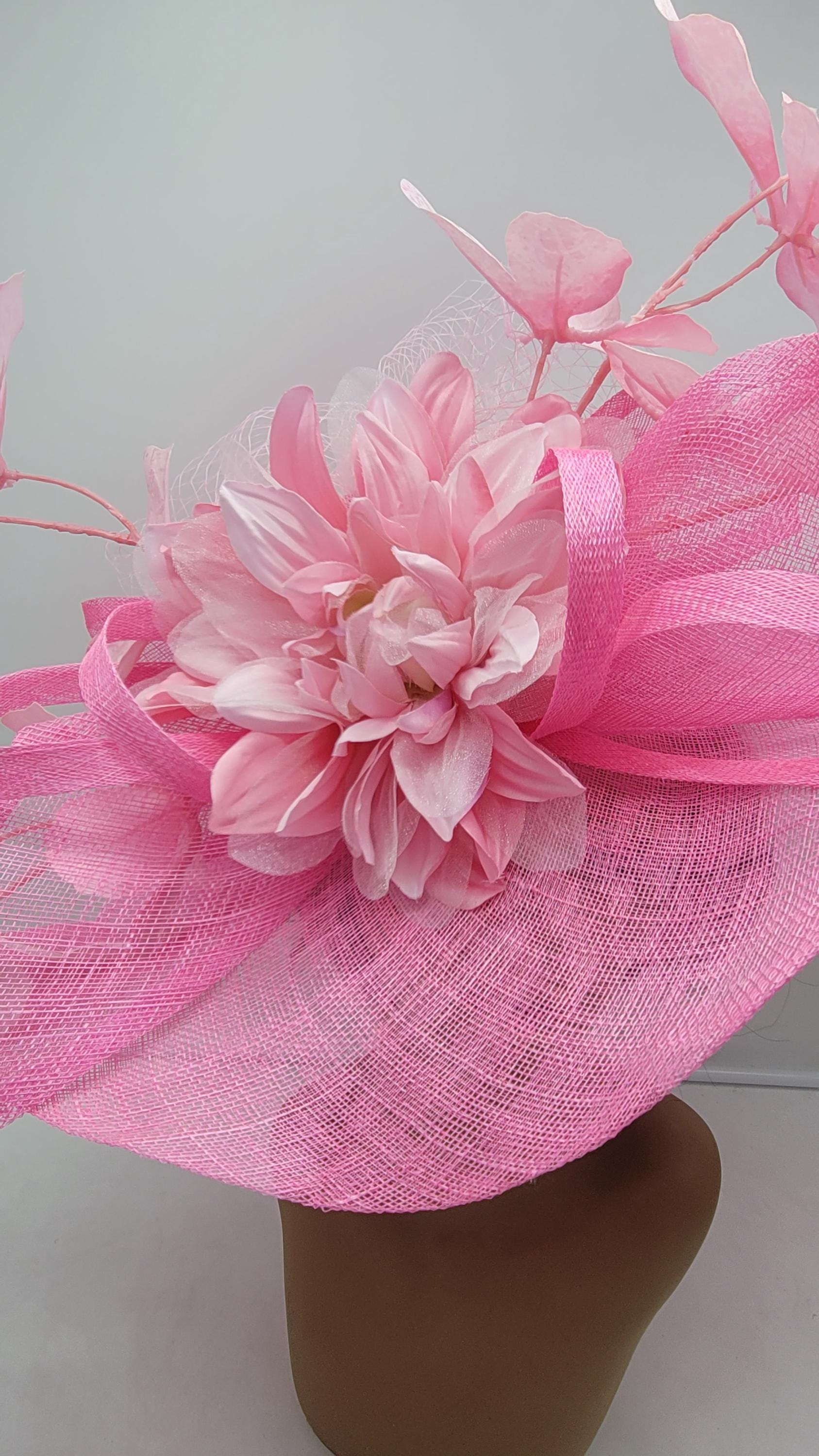 This stunning piece is sure to turn heads with any outfit. Hot Pink Fascinator. Securely by headband. This will be a great way to add elegance to any, bridesmaid, rehearsal dinner, Wedding guest, cocktail party, or church outfit.
