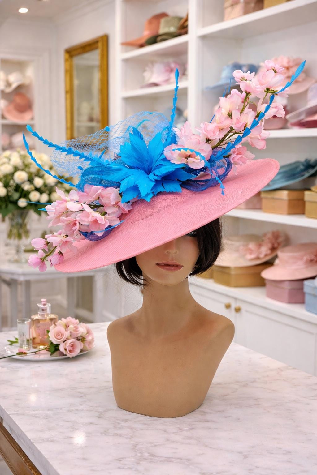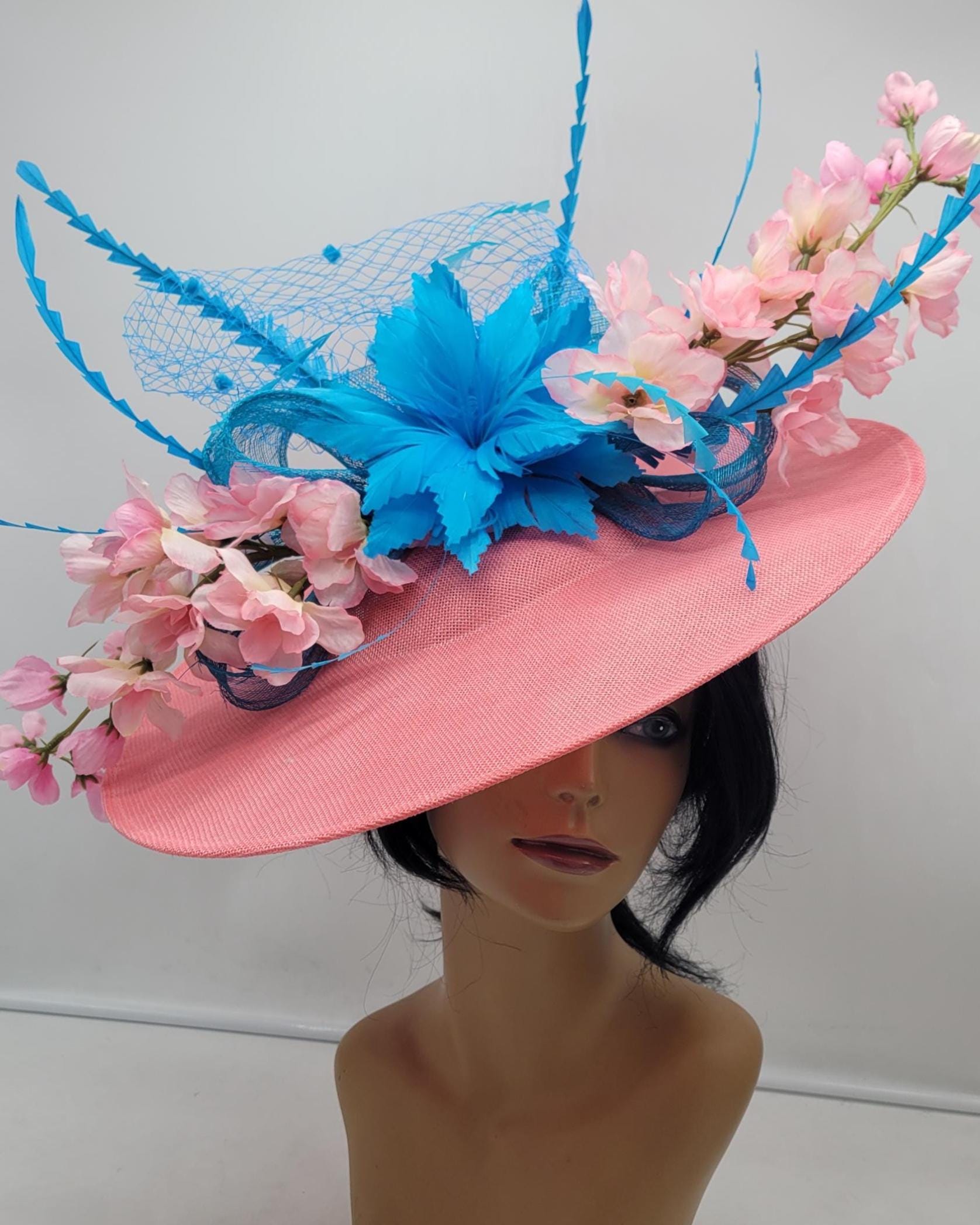 This stunning piece is sure to turn heads with any outfit. Hot pink Fascinator on a 2" headband for a secured look. This will be a great way to add elegance to any, bridesmaid, rehearsal dinner, Wedding guest, cocktail party, or church outfit.