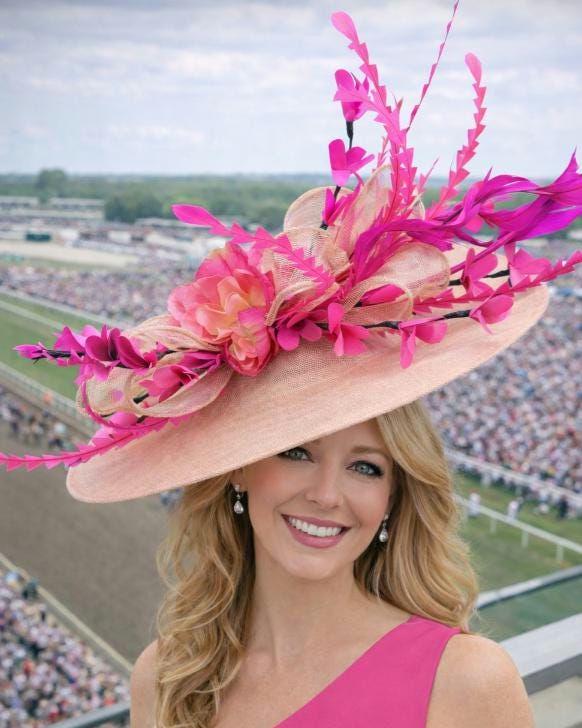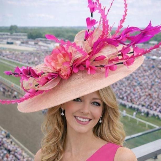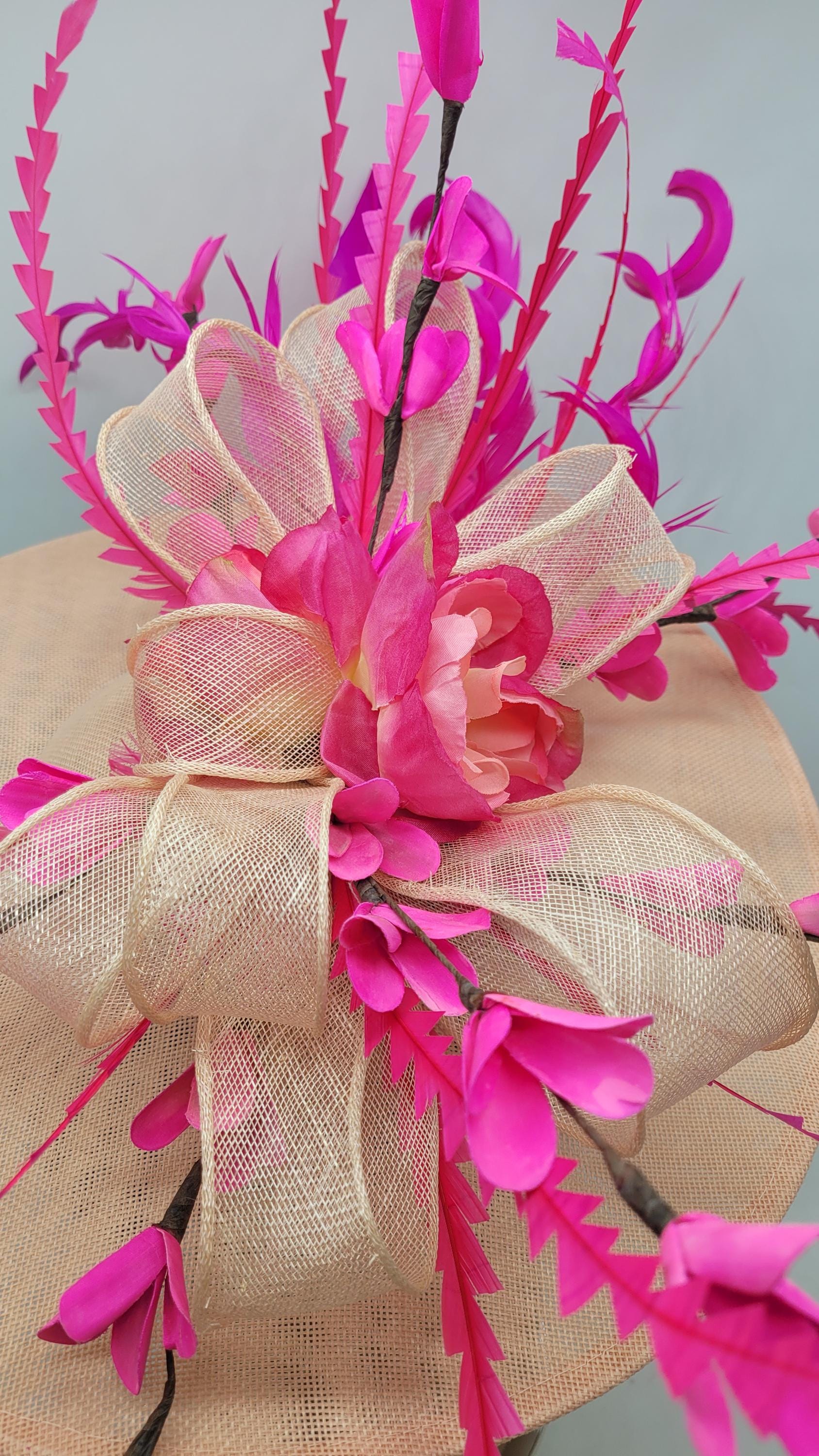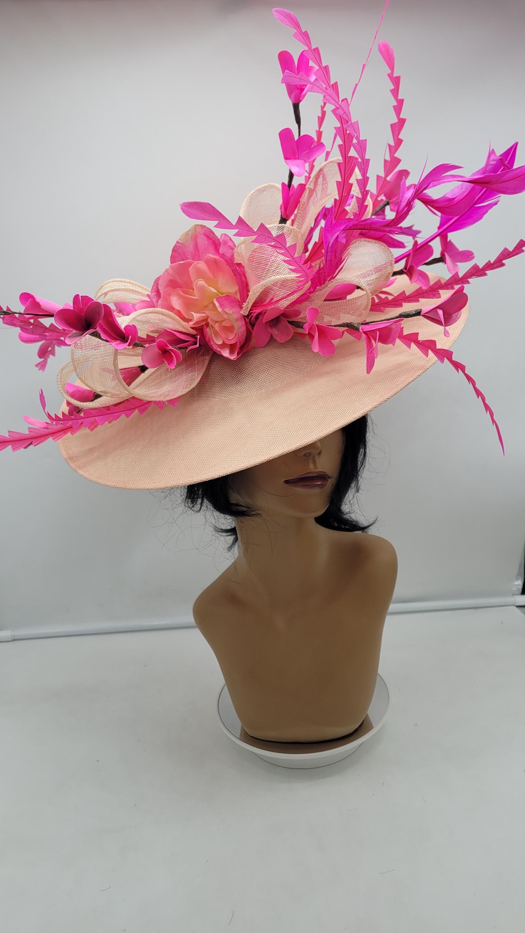 Pale Peach classic Kentucky derby and with fuschia. Vintage look and a classy finish. Great way to compliment your wedding, bridal shower, rehearsal dinner, cocktail party, or church outfits.