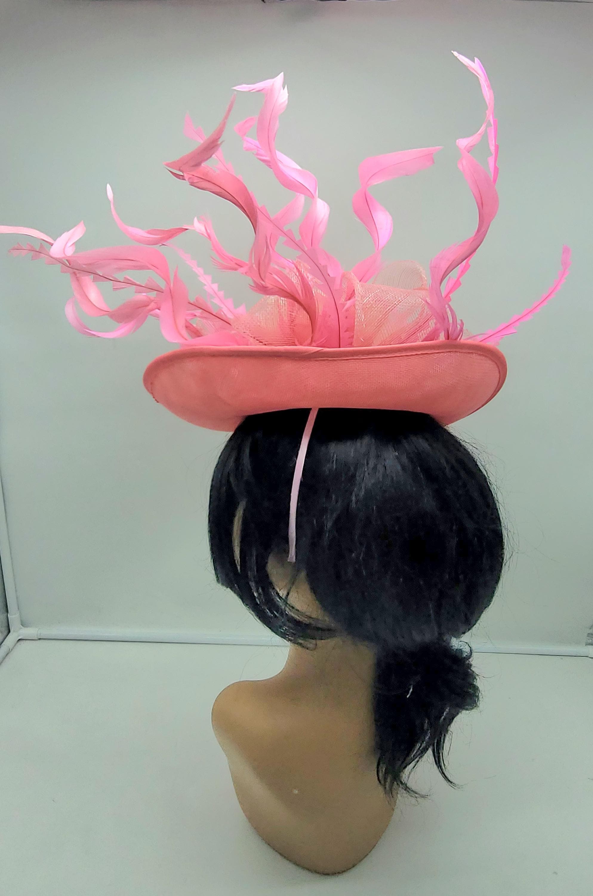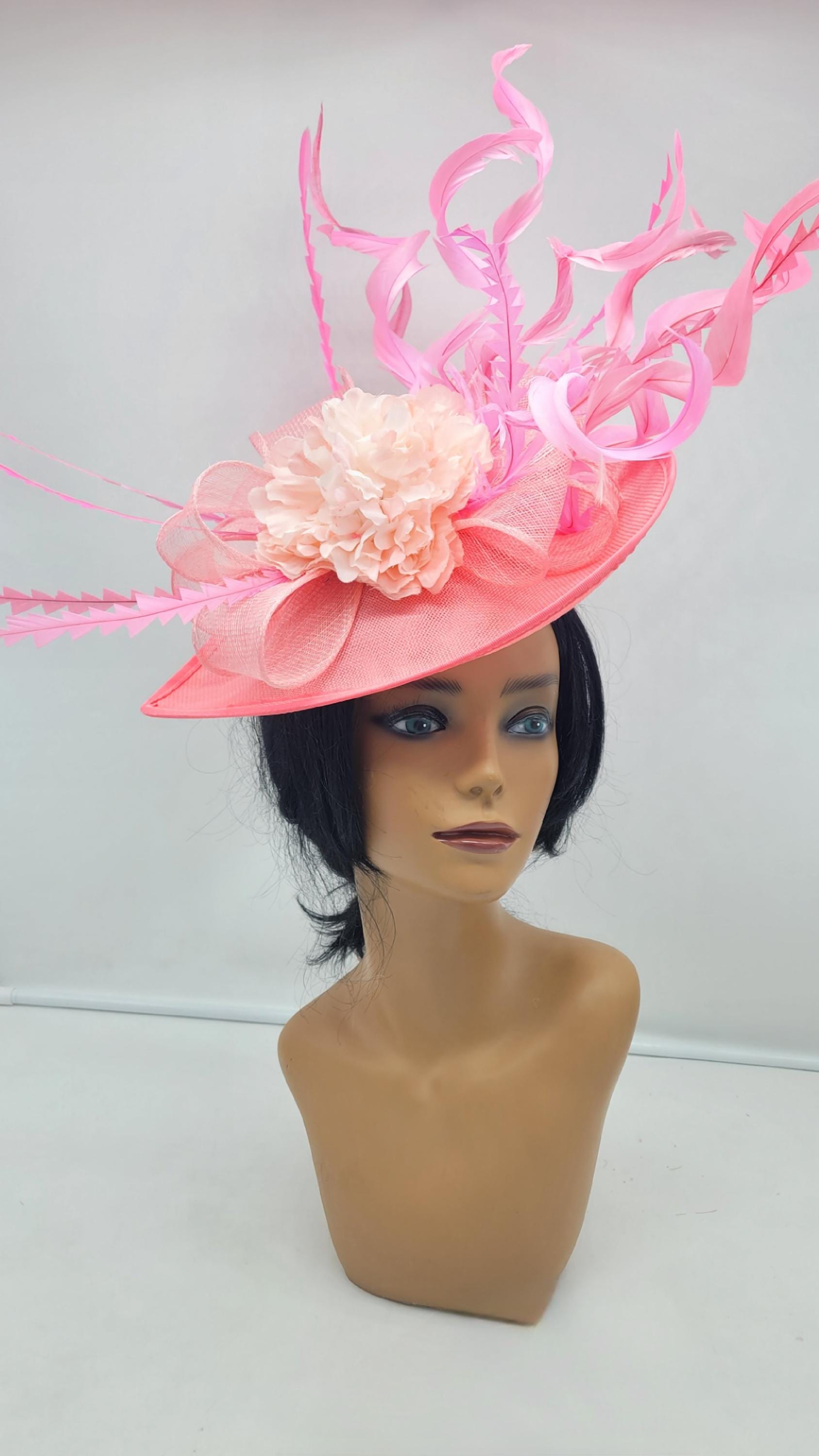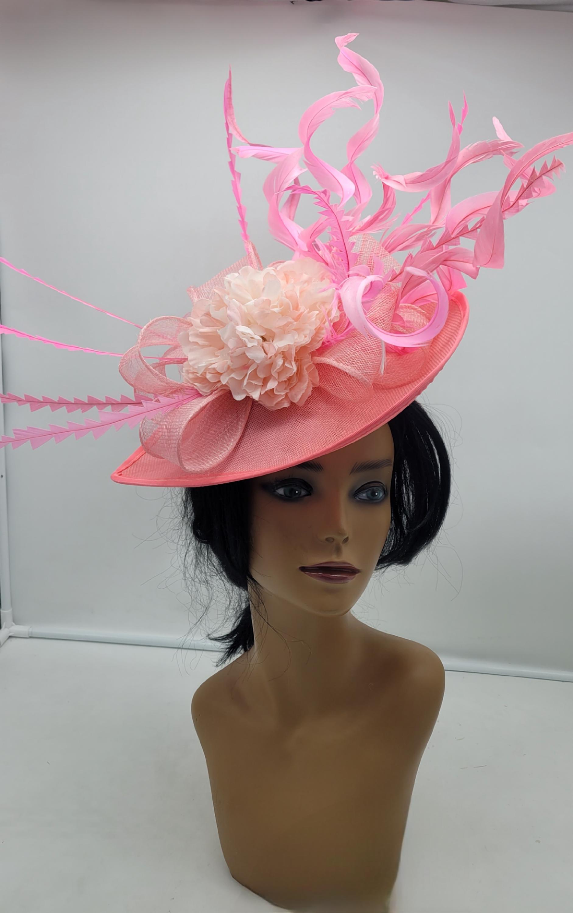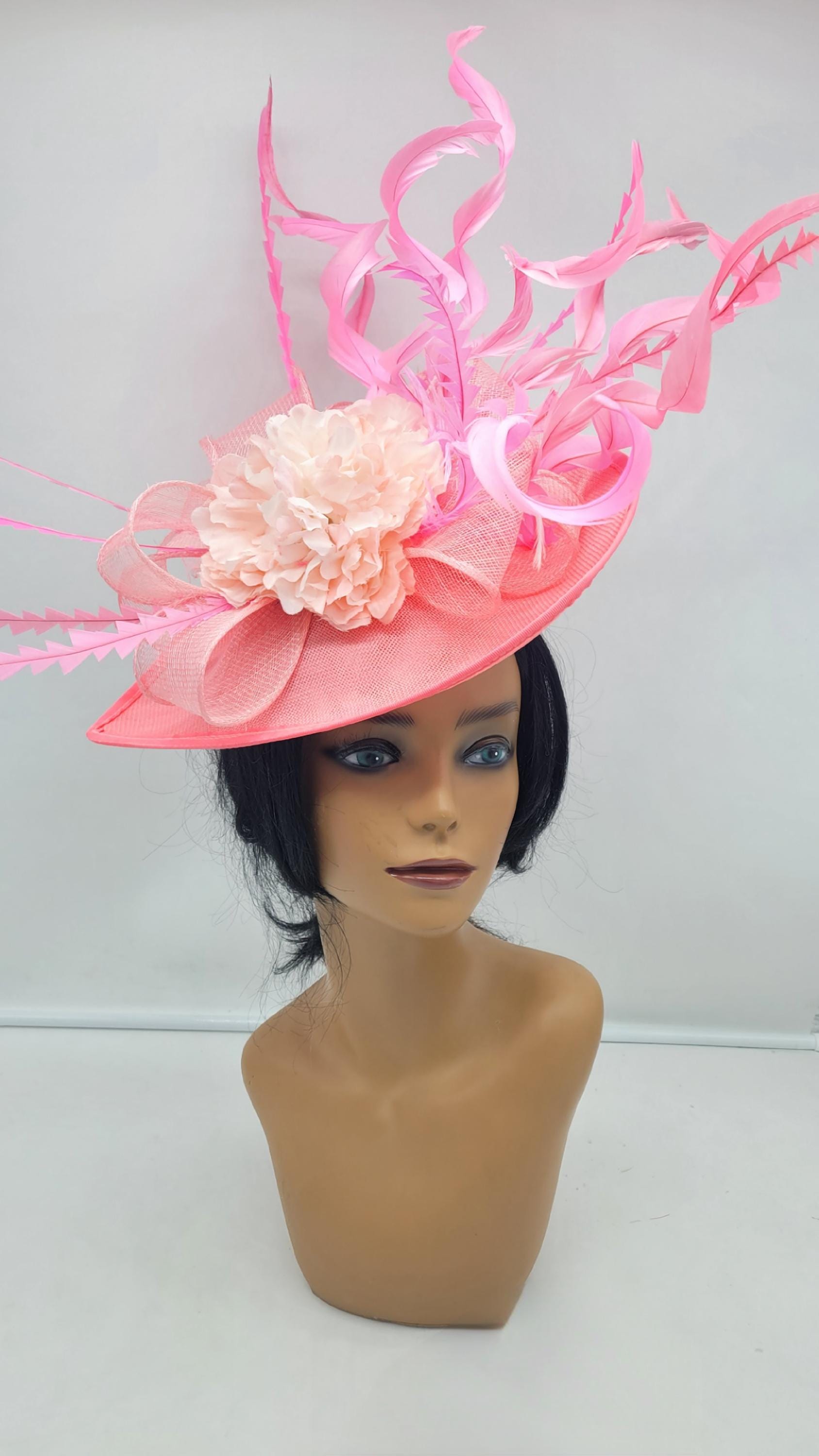 Elegant Pink sinamay Fascinator. Has a headband and hair clip for a secured and comfortable look. This will be a great way to add elegance to any, bridesmaid, rehearsal dinner, Wedding guest, cocktail party, or church outfit.