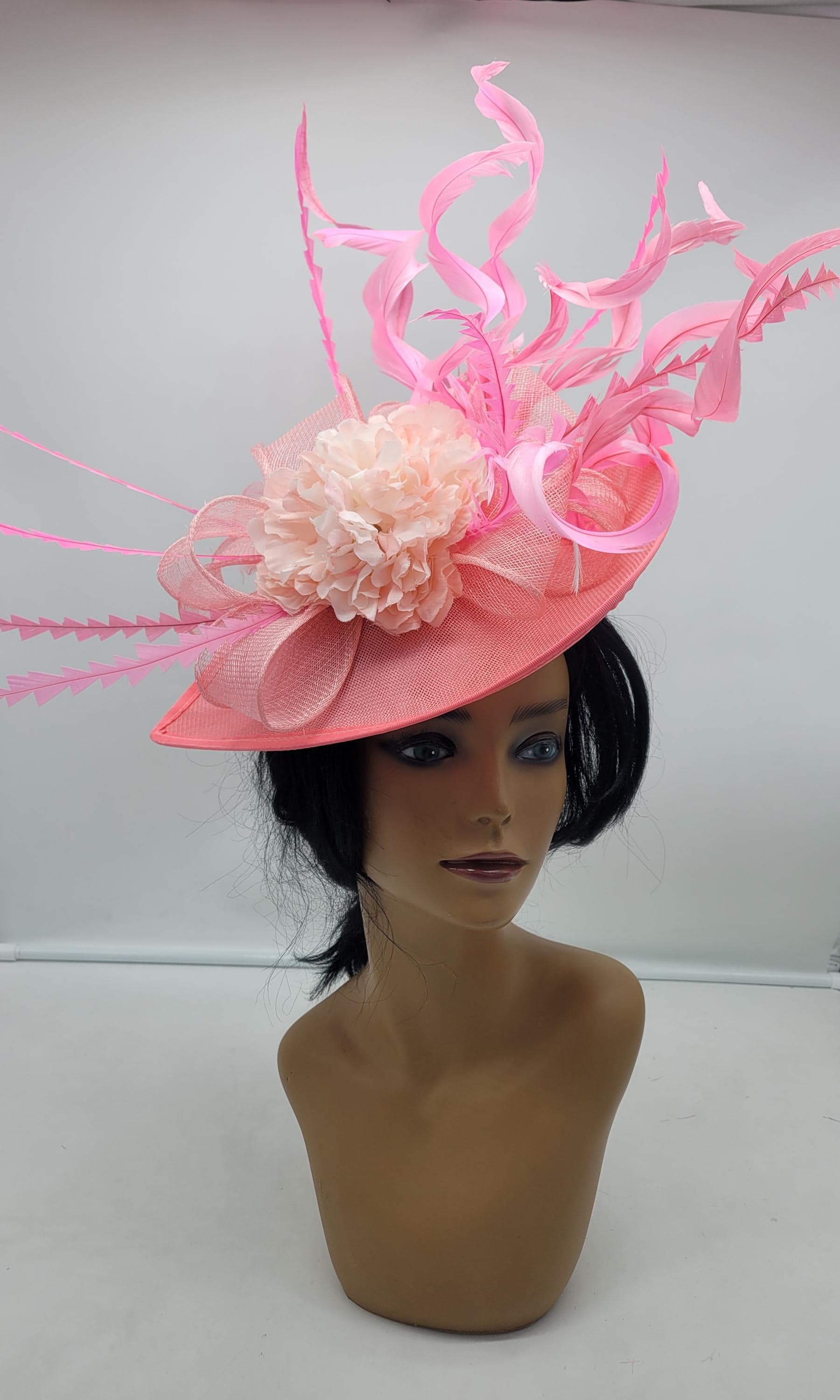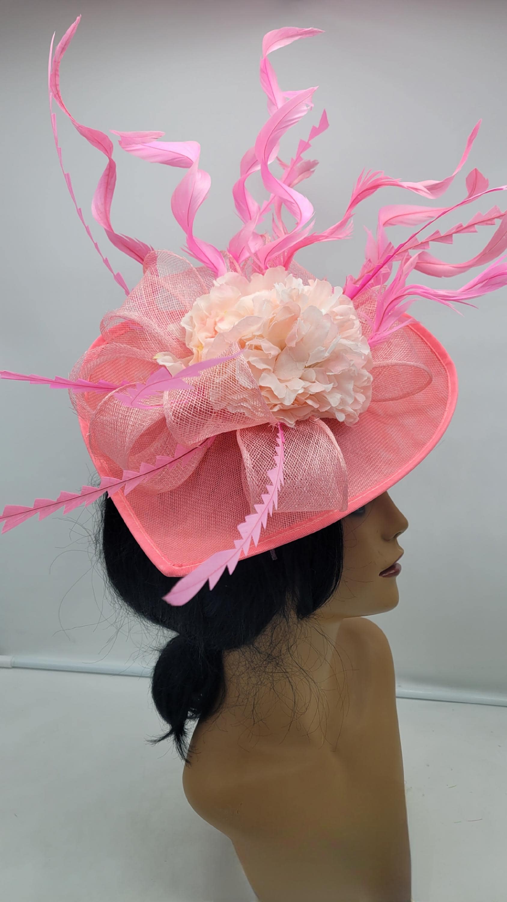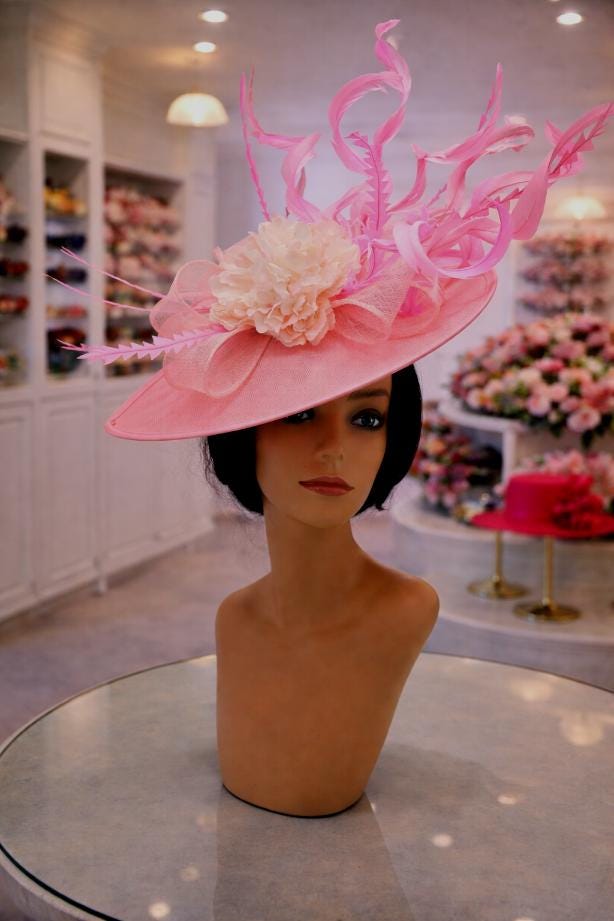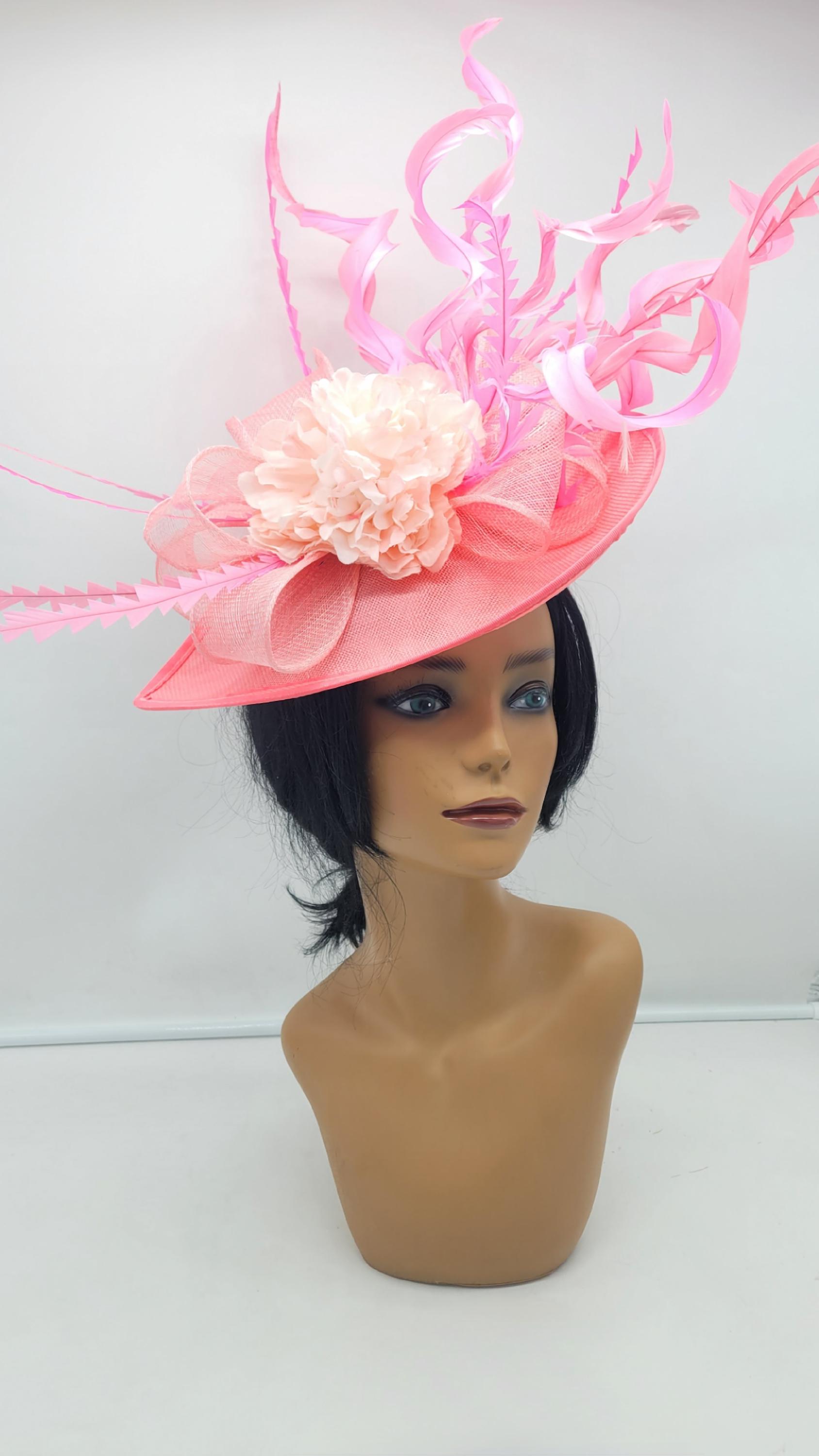 Elegant Pink sinamay Fascinator. Has a headband and hair clip for a secured and comfortable look. This will be a great way to add elegance to any, bridesmaid, rehearsal dinner, Wedding guest, cocktail party, or church outfit.
