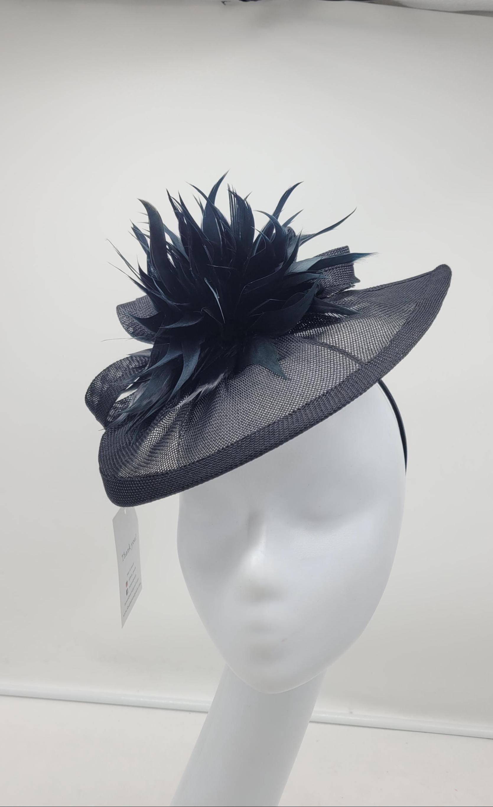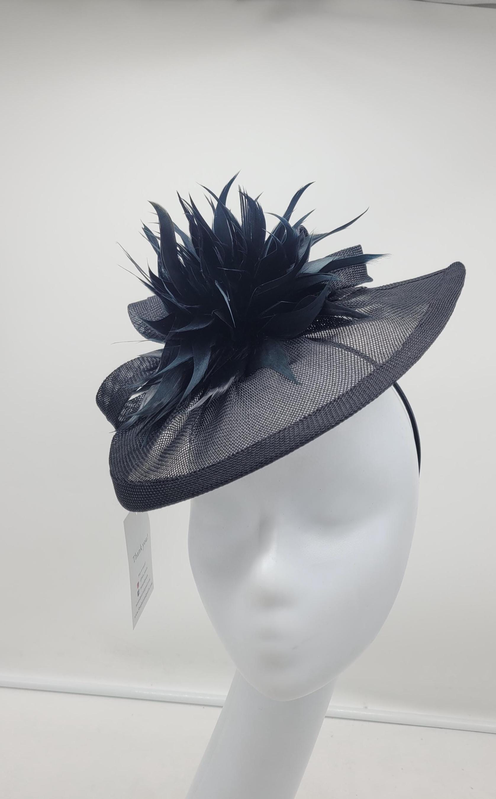 Can be customized in other colors. Made from lace, sinamay, tulle and feathers.