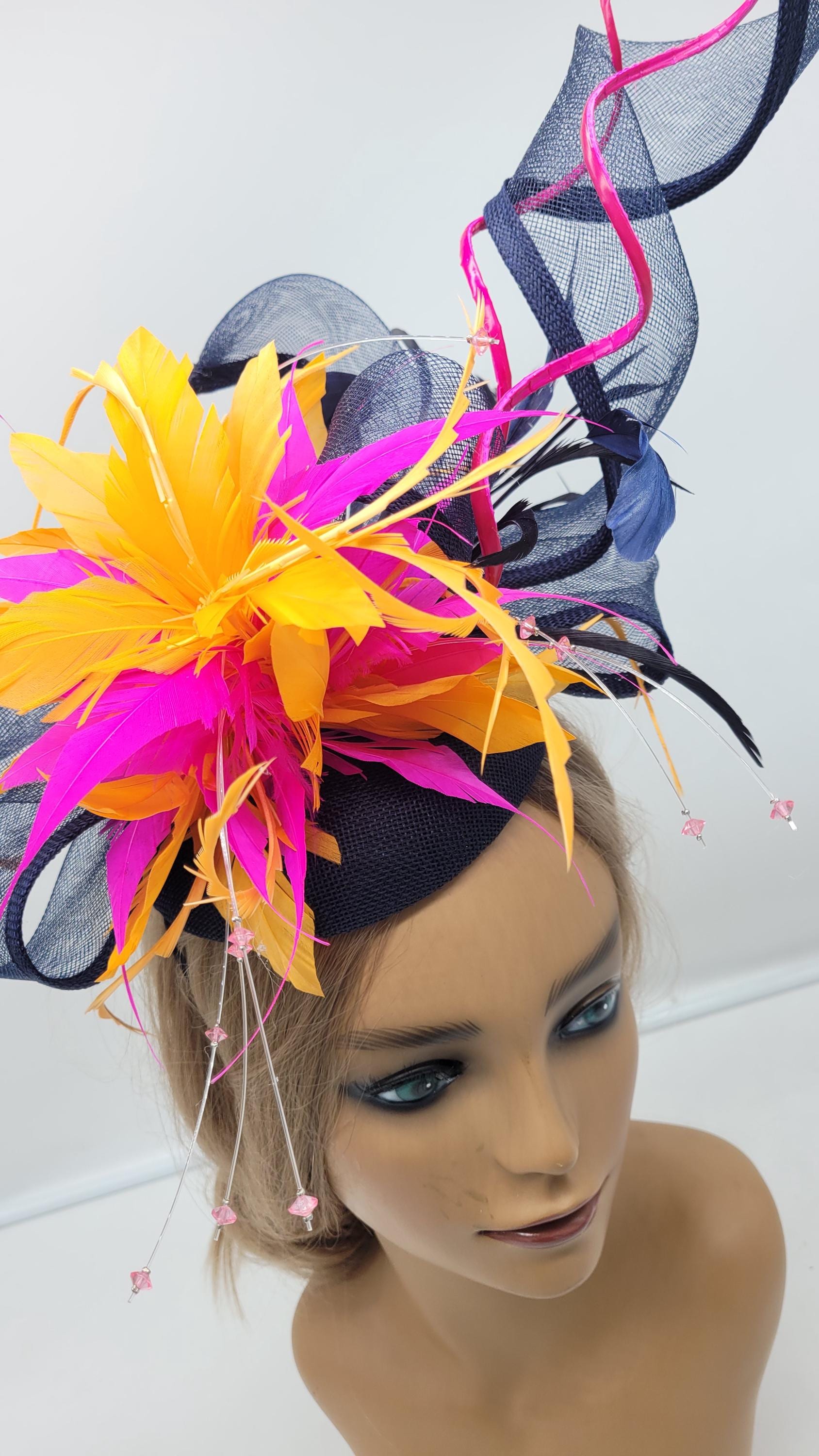Beautiful sinamay Fascinator. Sinamay Royal Blue Wedding Fascinator Bridesmaids Hat Kentucky Derby Cocktail Party Tea Party Guest Easter