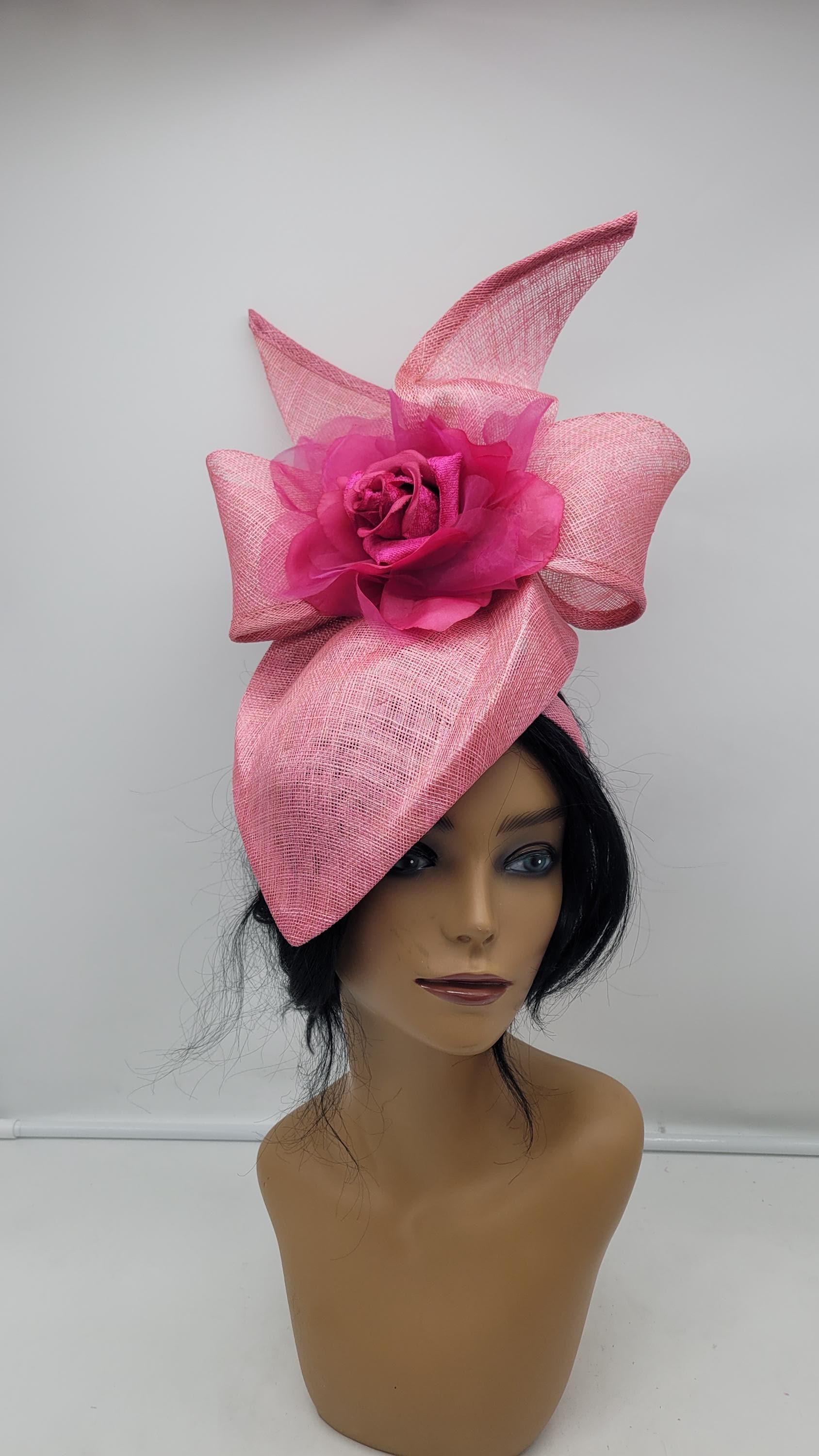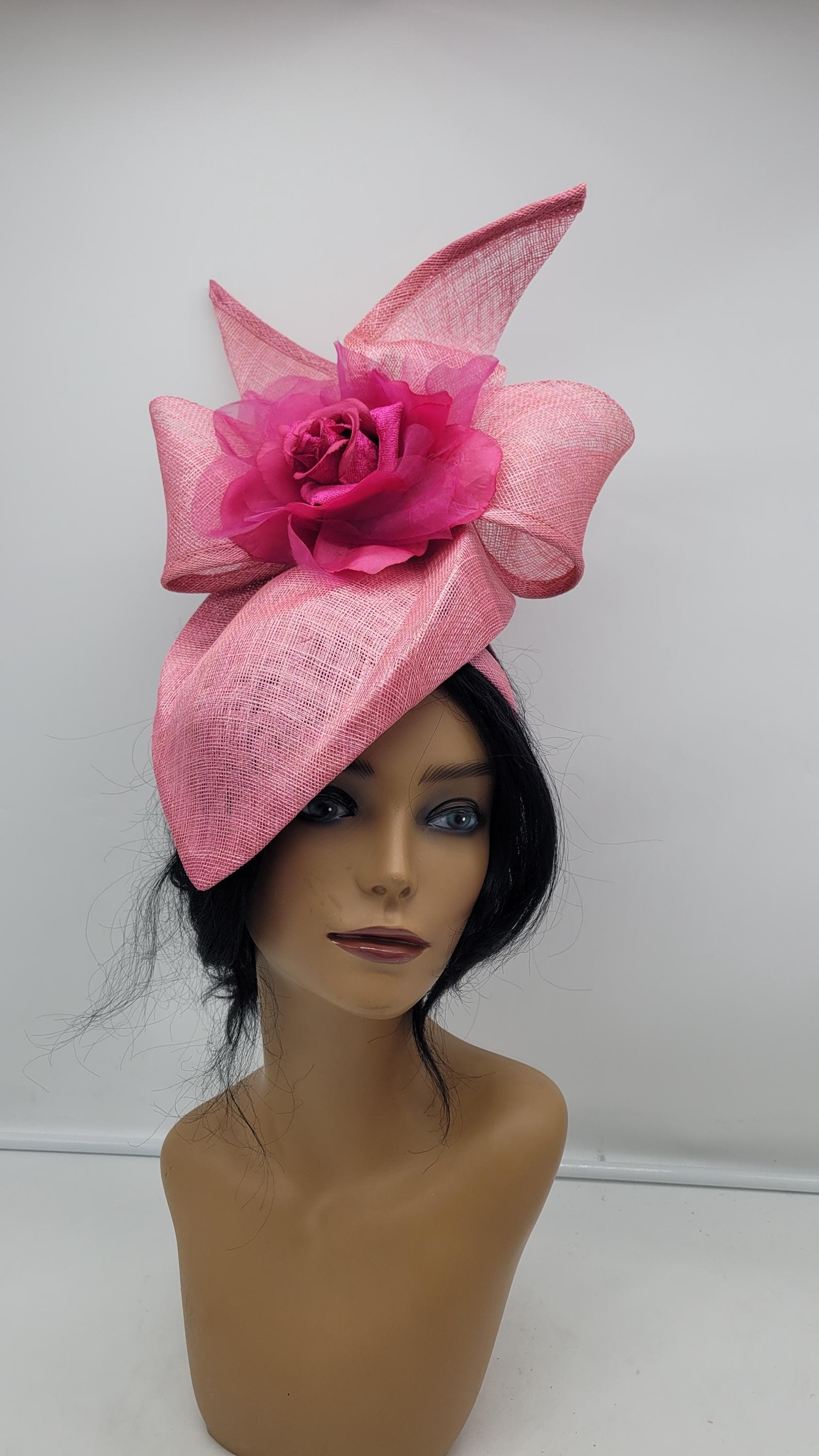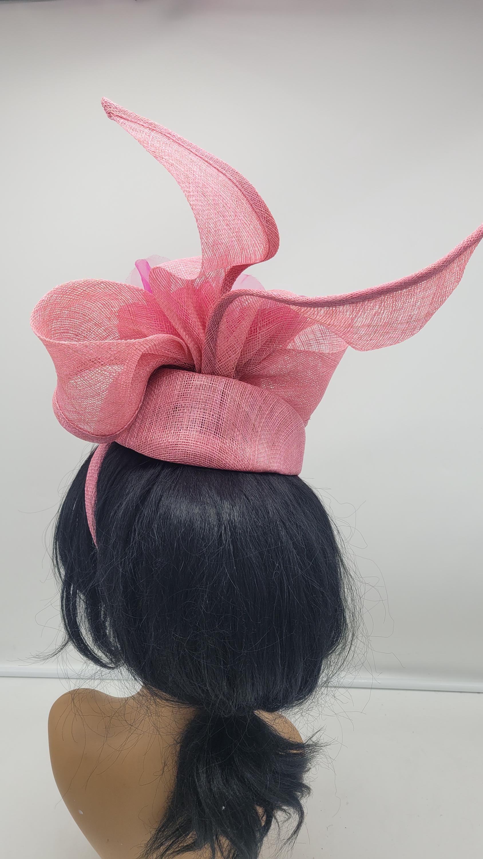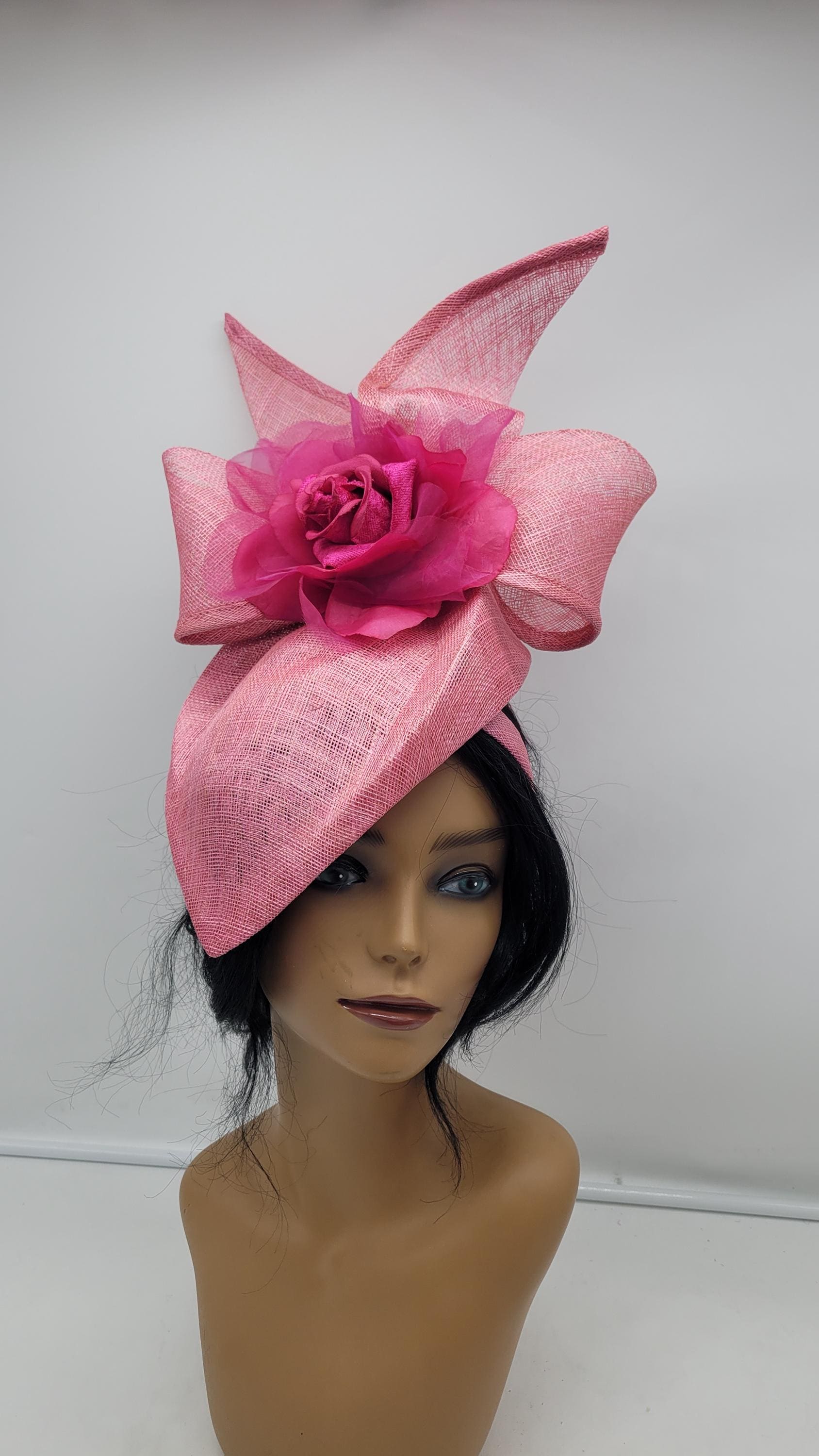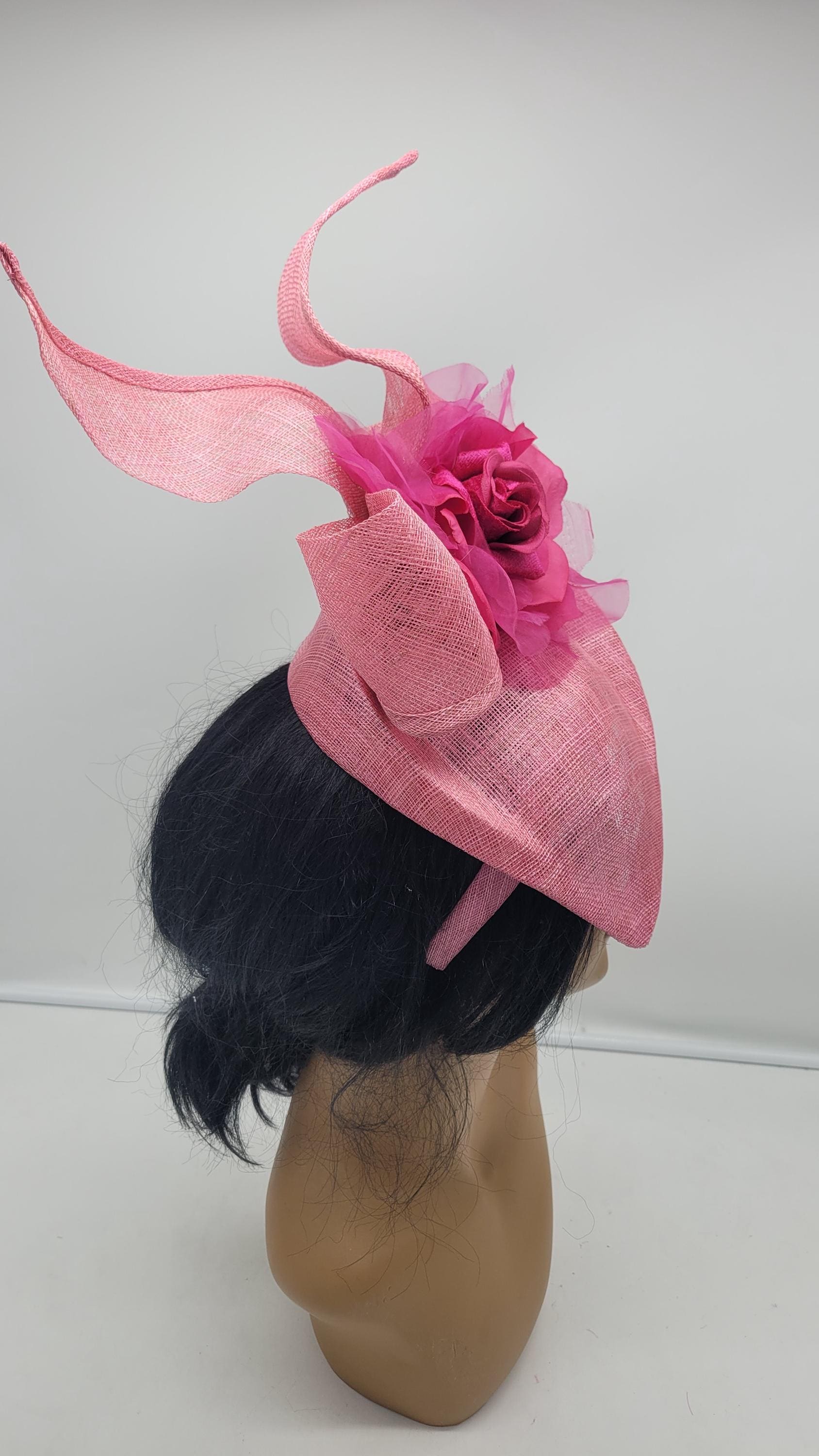 Beautiful sinamay Fascinator. Option to use veil or not. Sinamay Pink Wedding Fascinator Bridesmaids Hat Kentucky Derby Cocktail Party Tea Party Guest Easter Kate Middleton -