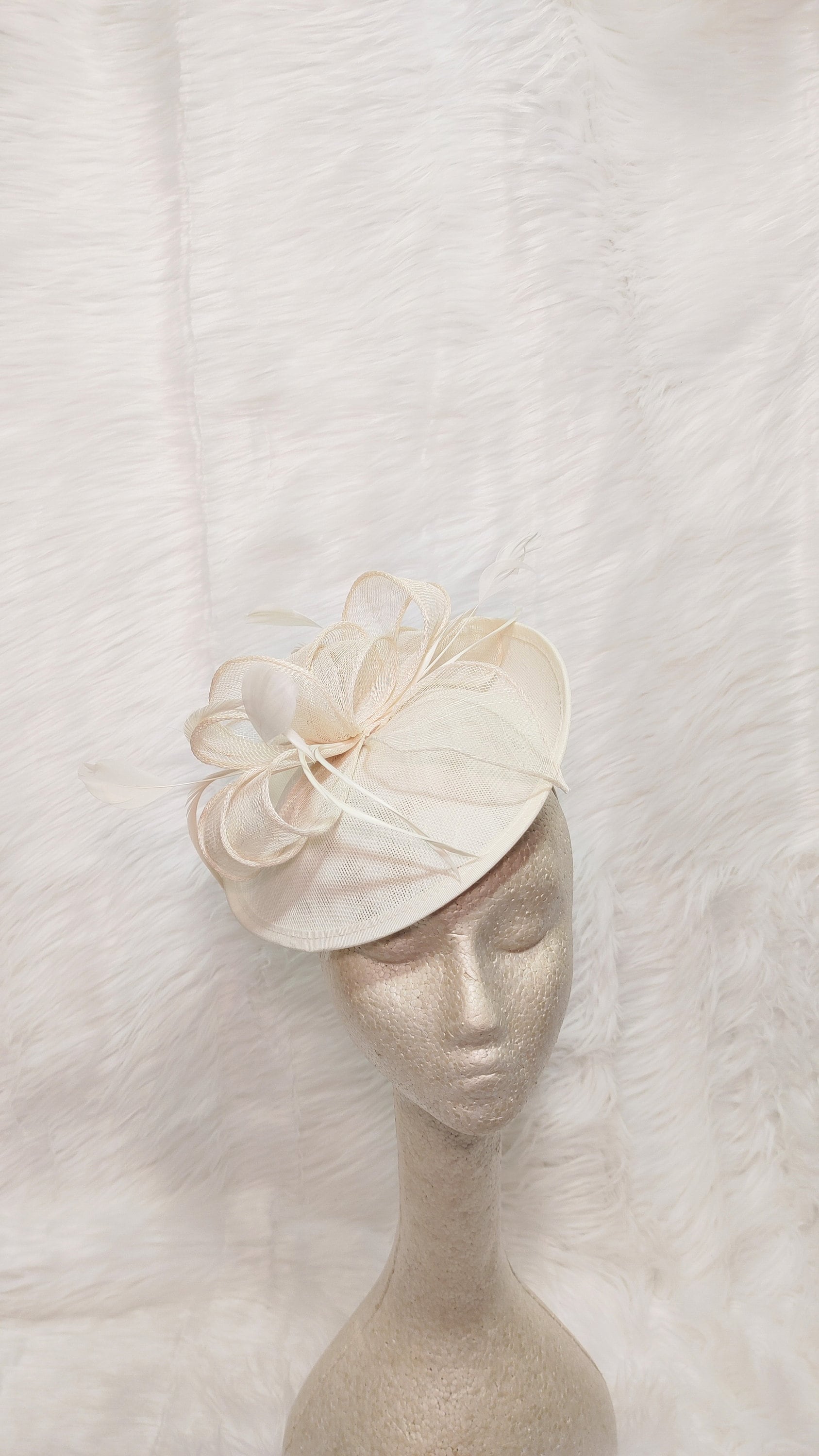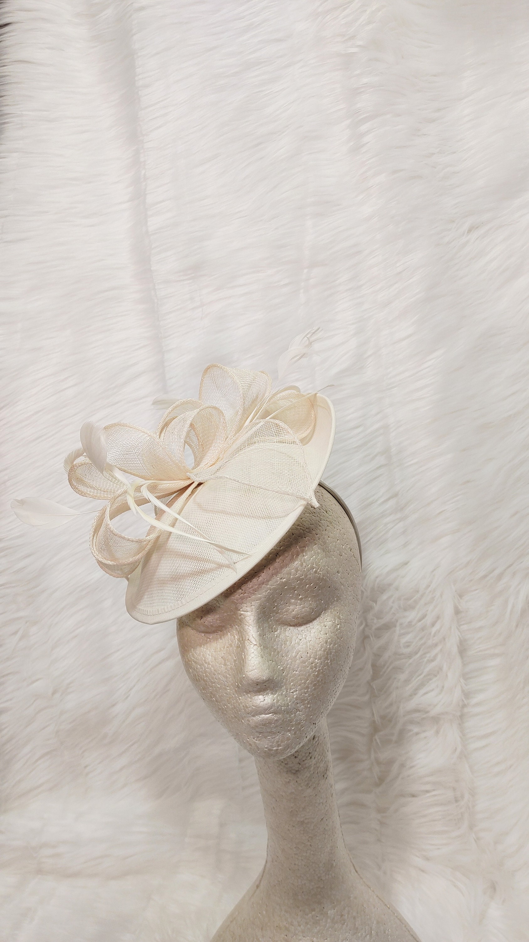 Beautiful ivory sinamay Fascinator. Sinamay ivory for all occasions- Bridesmaids Hat Kentucky Derby Cocktail Party Tea Party Guest Easter and so on.